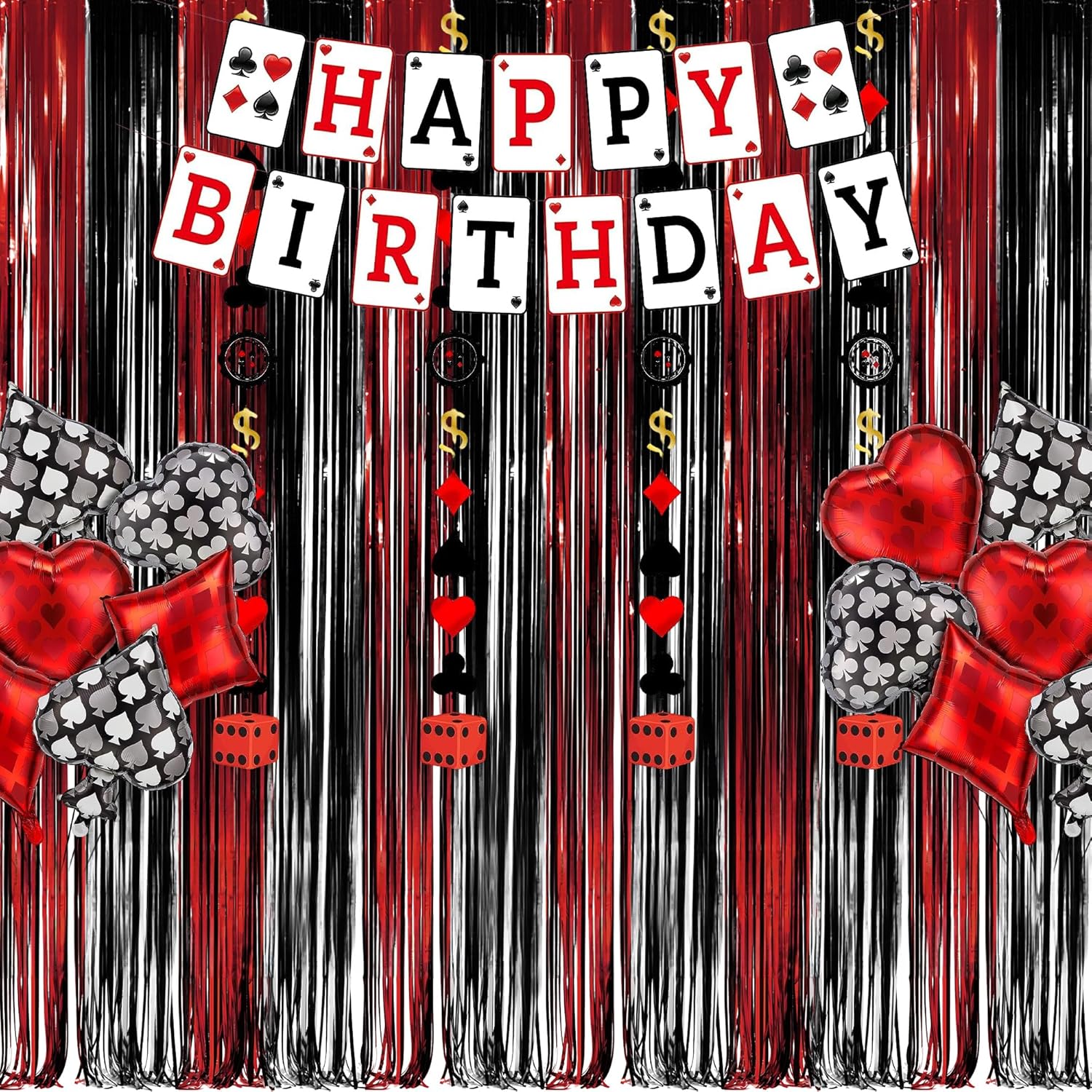 - Infuse an aura of mystery with our Black Red party streamers β a captivating addition that Black and Red themed events, Casino's theme party, and more. These tinsel backdrops in foil fringe curtain style will transport you to the world of Stranger.