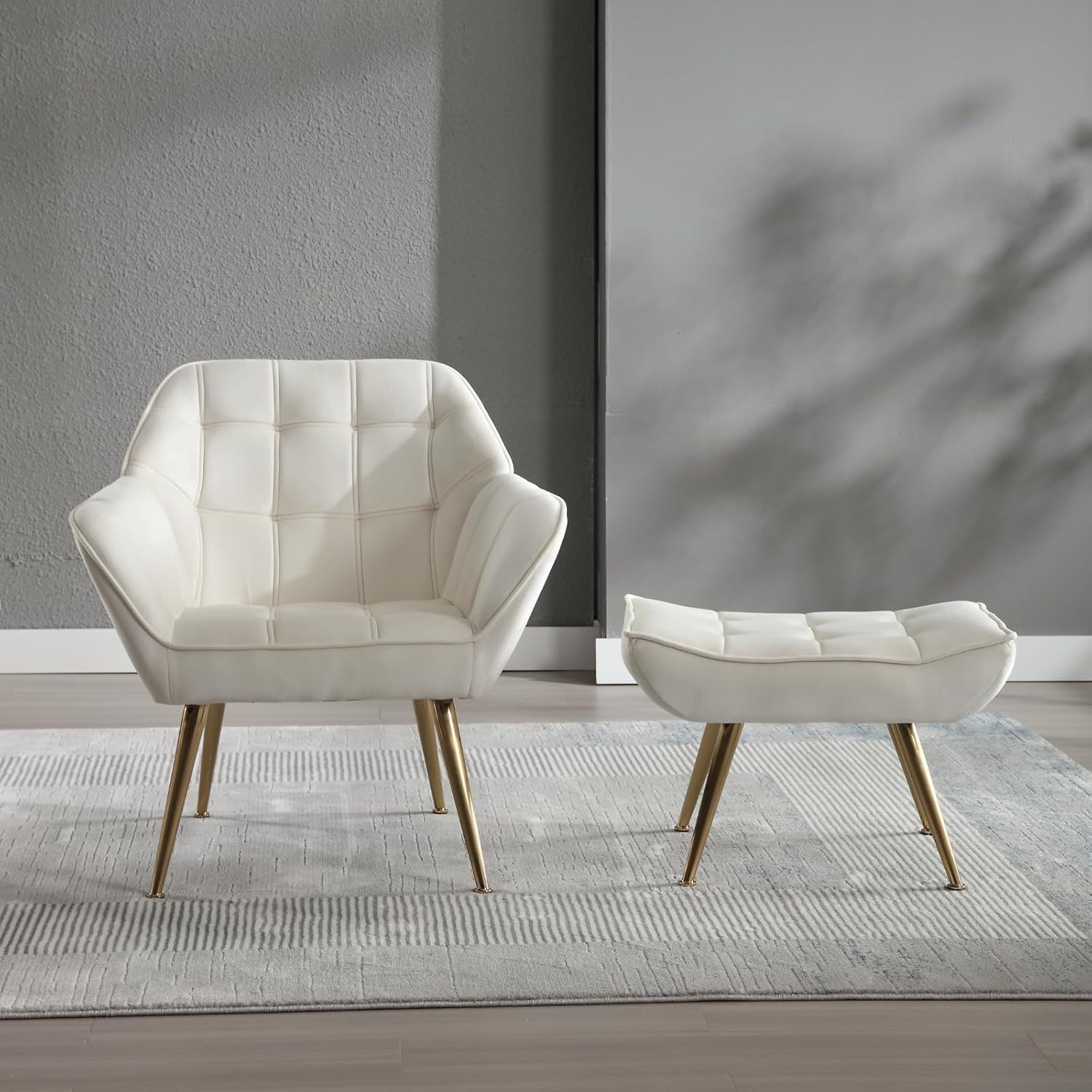 - 💗【Cozy Velvet Chair】 Leisure chair with ottoman is made of soft velvet fabirc with a hardwood frame as the basic structure. Fabric is comfortable, not pilling and fading. Stylish flared armrest, soft quilting back design would be a leisure style in your home office.