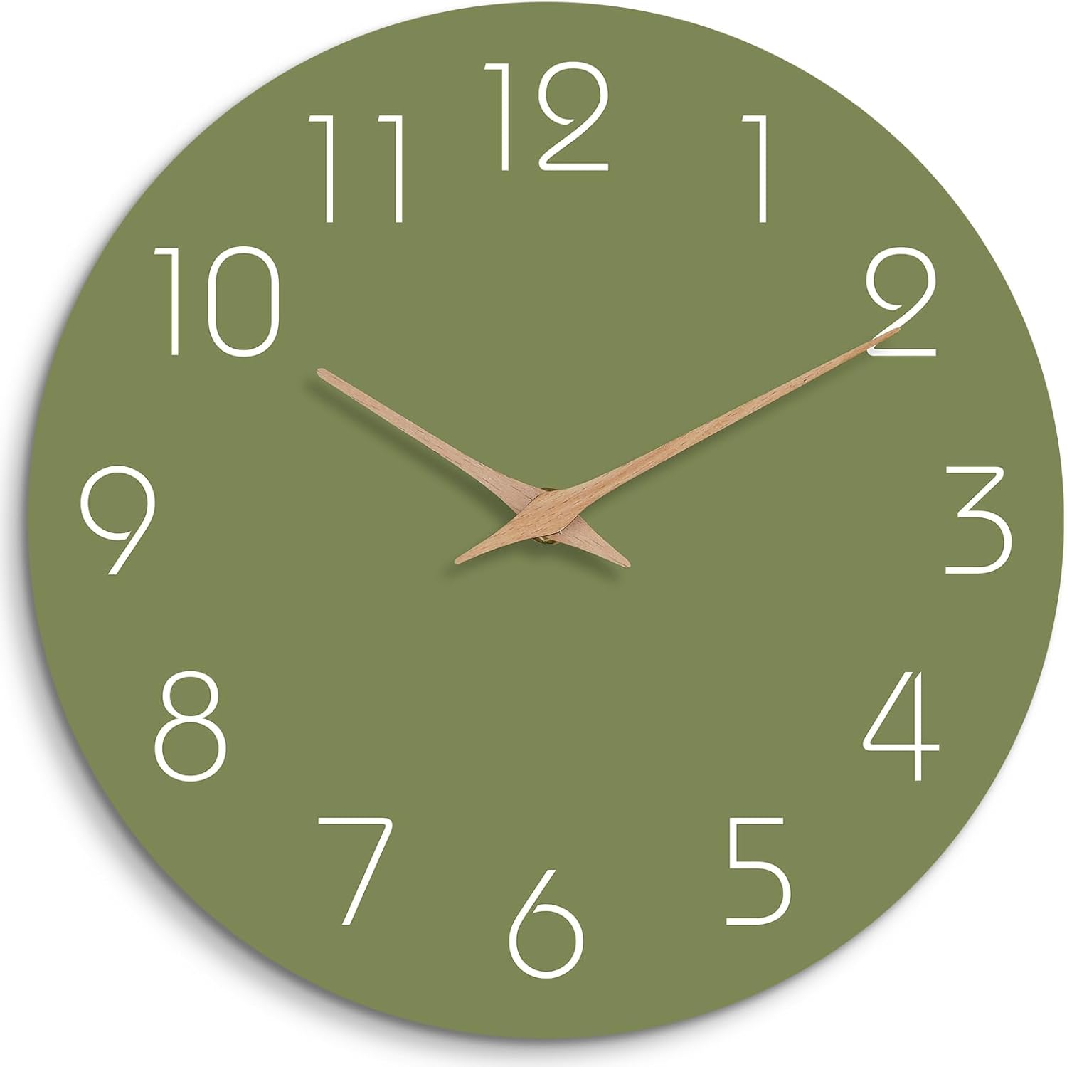 Mosewa Modern Wall Clock Silent Non-Ticking 14 Inch Olive Green Battery Operated Simple Minimalist for Living Room Office Bedrooms Kitchen Home Decor