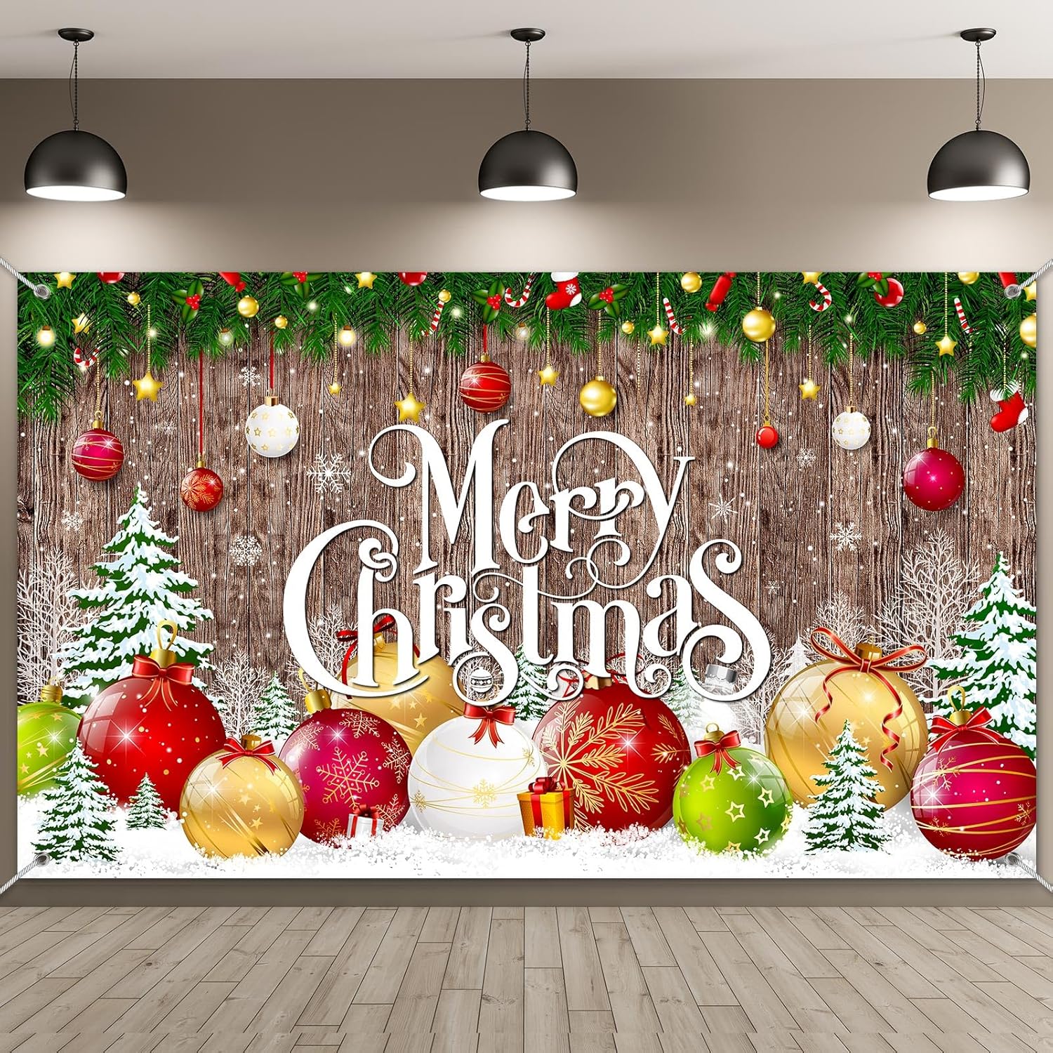 Irenare Christmas Backdrop Merry Christmas Banner Party Decoration Xmas Photography Background Photo Props for Winter Holiday New Year Eve Family Party Decoration Supplies(Large Xmas Ball)
