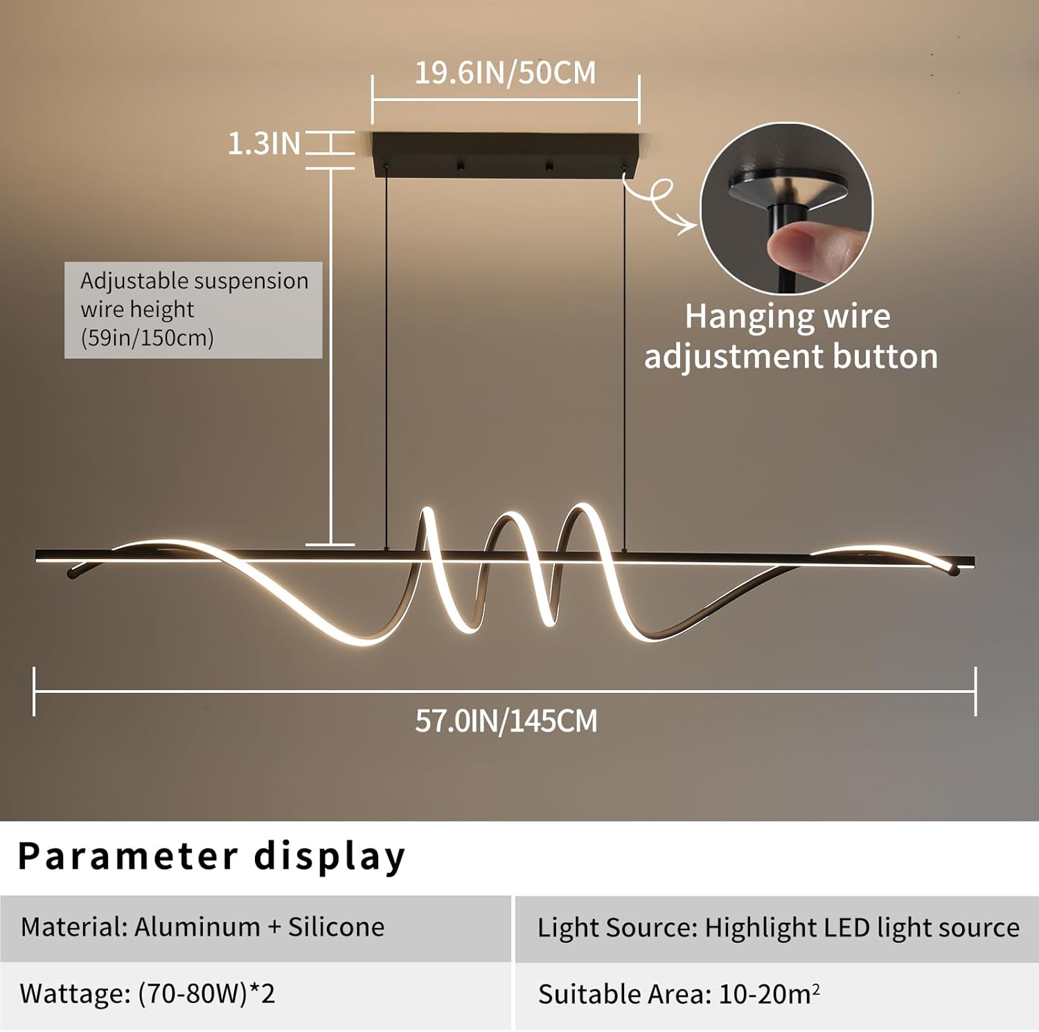 Modern Ceiling Chandelier Light, Acrylic Anti Flicker Pendant Lamp with Remote Control Dimmable 3 Color Mode & Brightness (Warm Cool Neutral Light) for Kitchen Bar(Black,57IN