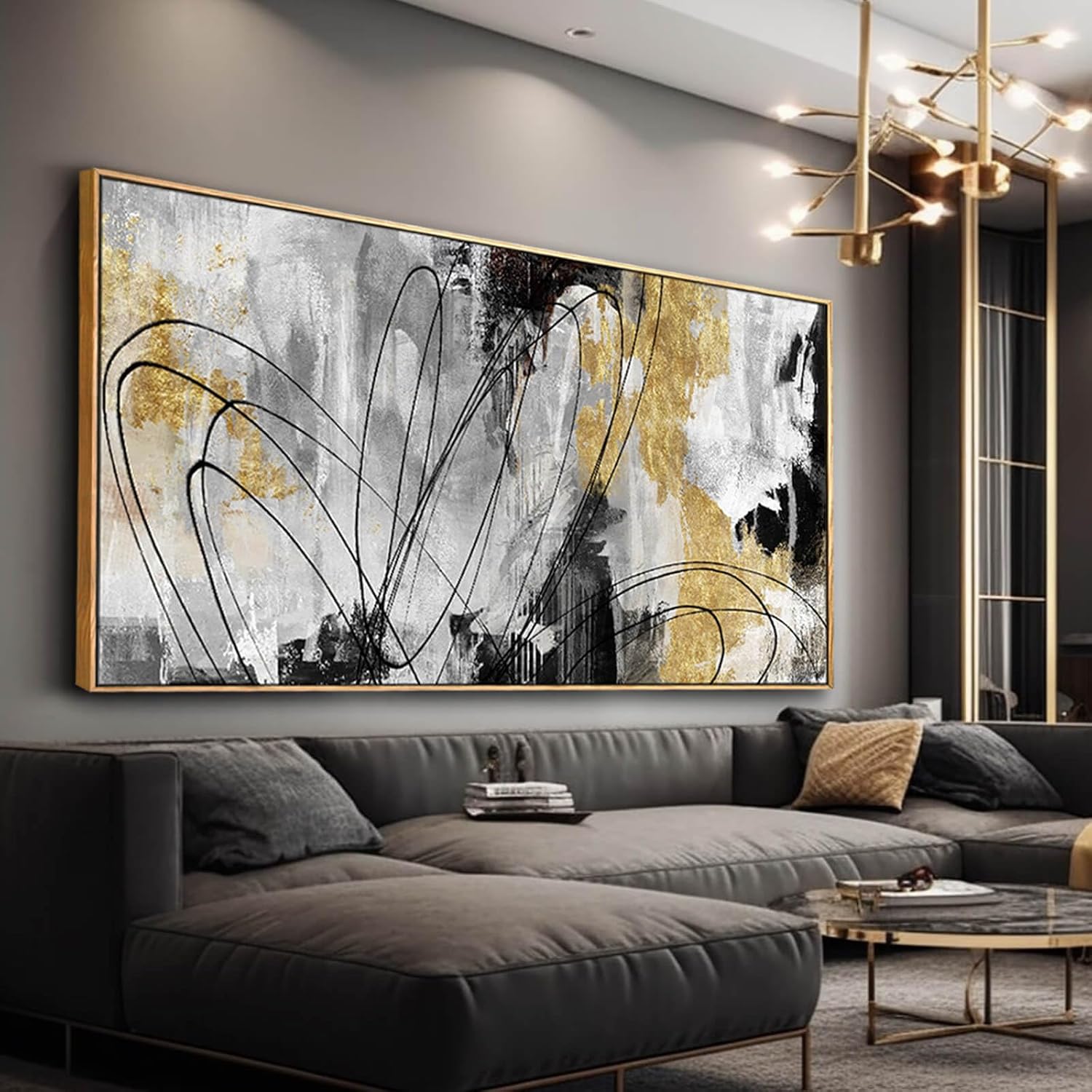Large Canvas Wall Art Gold Abstract Paintings 29x58 Inch Wooden Framed Artwork Black Line Painting for Bedroom Bathroom Home Decor