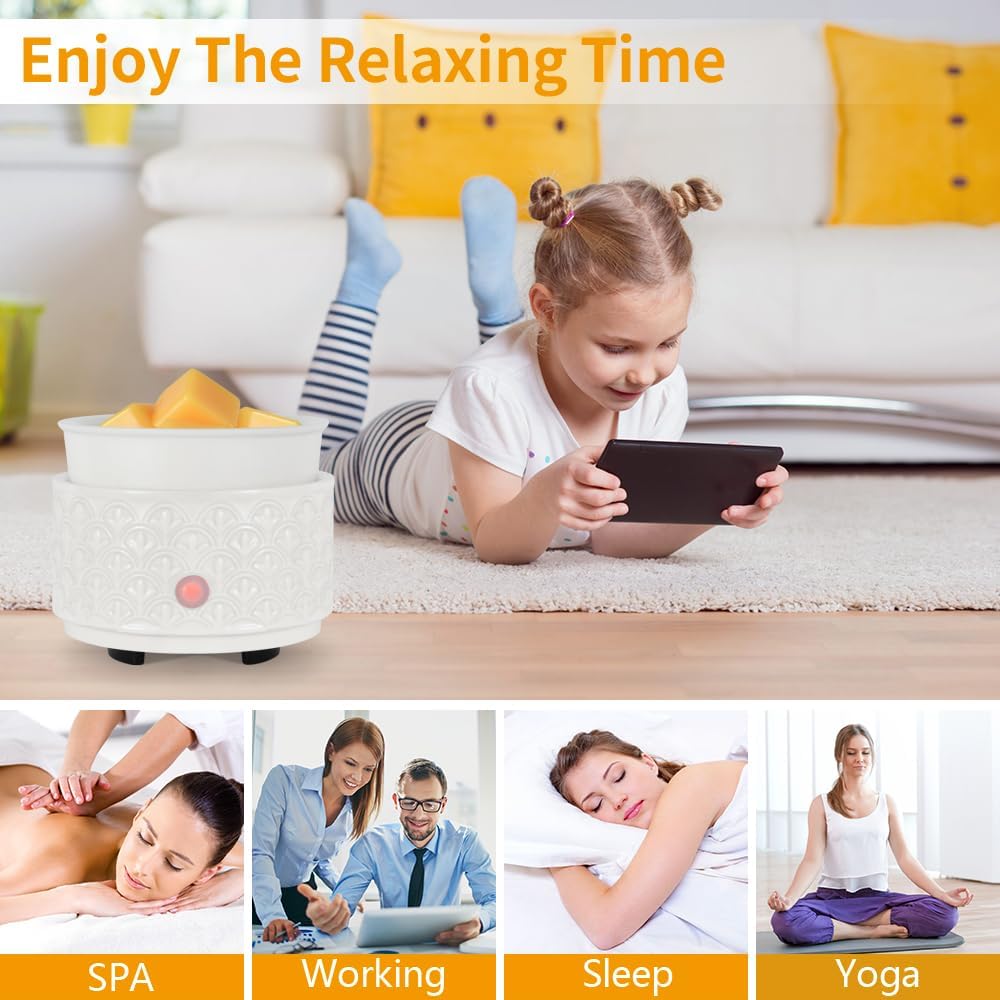 - 【Energy Saving& Safe】 Experience a safer and cleaner alternative to traditional candles. This ceramic wax melt warmer offers a flameless, soot-free, and pollutant-free way to enjoy your favorite scents.