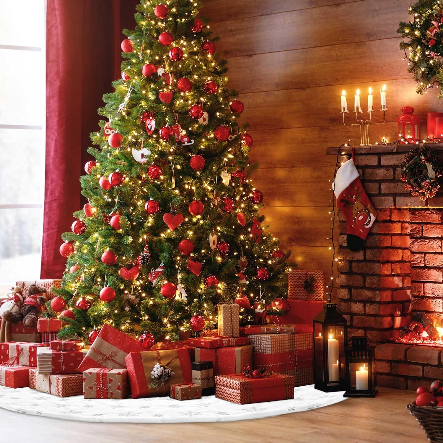 - Suitable Size: With a generous diameter of 122 cm/48 inches, our xmas tree skirt fits perfectly with trees ranging from 5 to 7 feet in height, whether they are traditional or artificial. It provides an ideal space to showcase your favorite gifts and becomes a beloved spot for pets and children during the winter and Christmas season.
