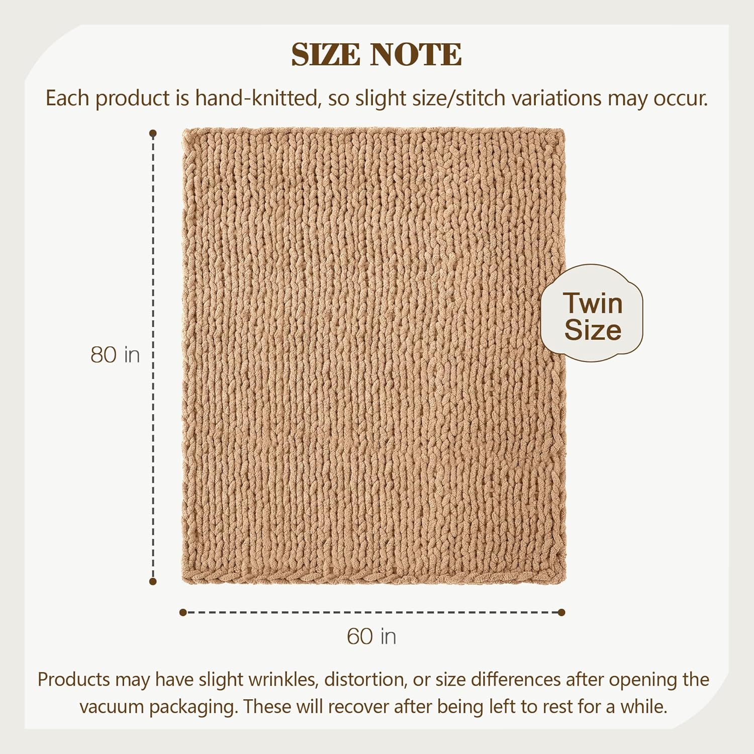 Carriediosa Chunky Knit Throw Blanket 60" X 80" Twin, 100% Hand Made Large Chenille Loop Yarn Soft Fluffy Throws for Couch Sofa Bed, Big Crochet Cozy Heavy Thick Cable Woven Blankets, Tan Brown