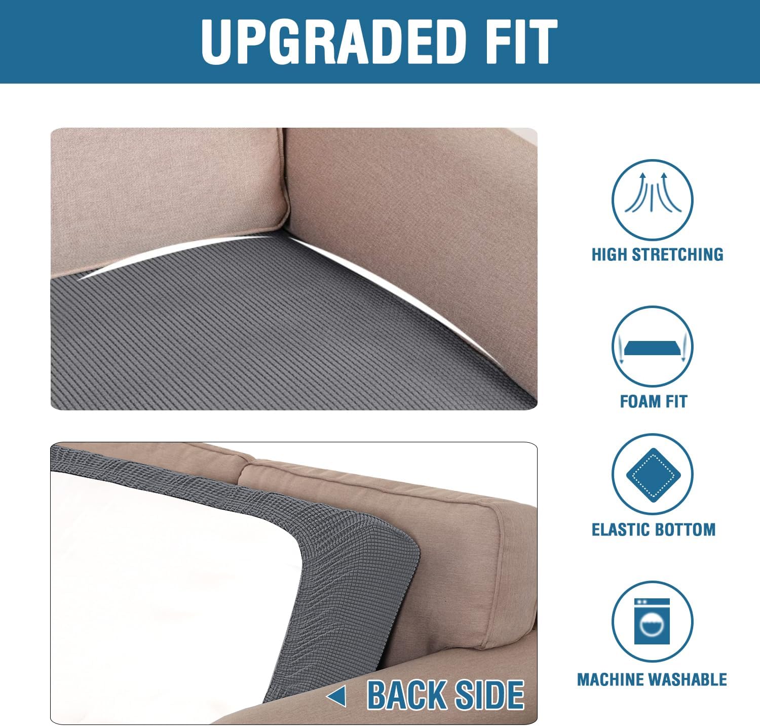H.VERSAILTEX Super Stretch Individual Seat Cushion Covers Sofa Covers Couch Cushion Covers Slipcover Sets Thick Jacquard Textured Twill Fabric (1 Piece Loveseat Cushion Cover, Grey)