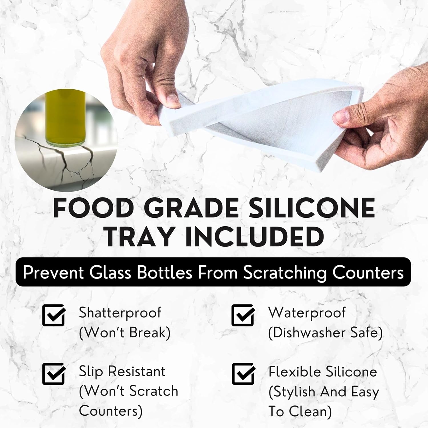 Olive Oil Dispenser For Kitchen With Silicone Tray & 40 Labels, Soy Sauce Dispenser, Coffee Syrup Dispenser, Olive Oil Bottles Set Of 2, Gold 500ml / 17oz