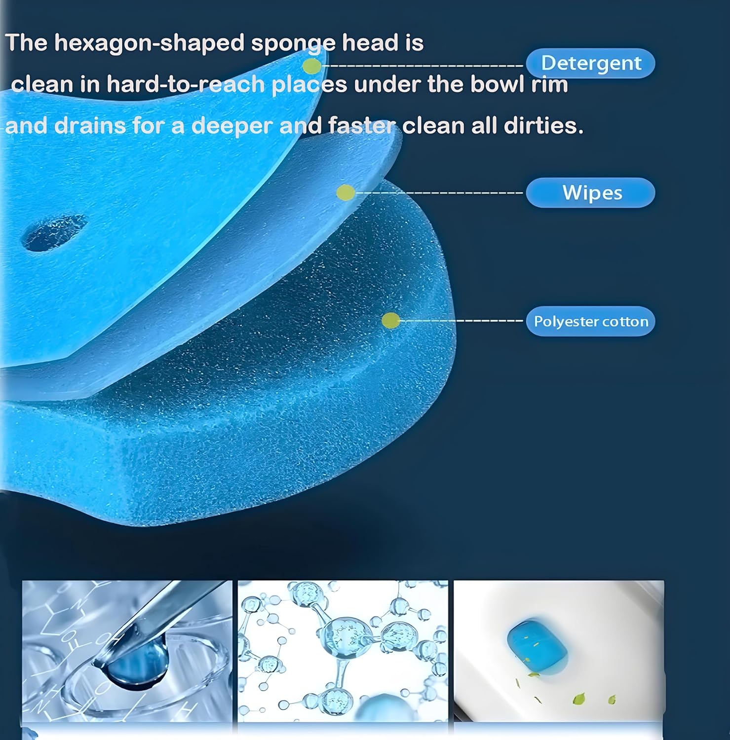 - 56 Count Toilet Bowl Wand Refills--The hexagon-shaped sponge refills are clean to in hard-to-reach places under the bowl rim and drains for a deeper and faster clean to the stub clean all kinds of dirt without damaging the toilet bowl surface. It also can be used to clean the bar sink, floor drain corner, toilet seat, mirrors, etc