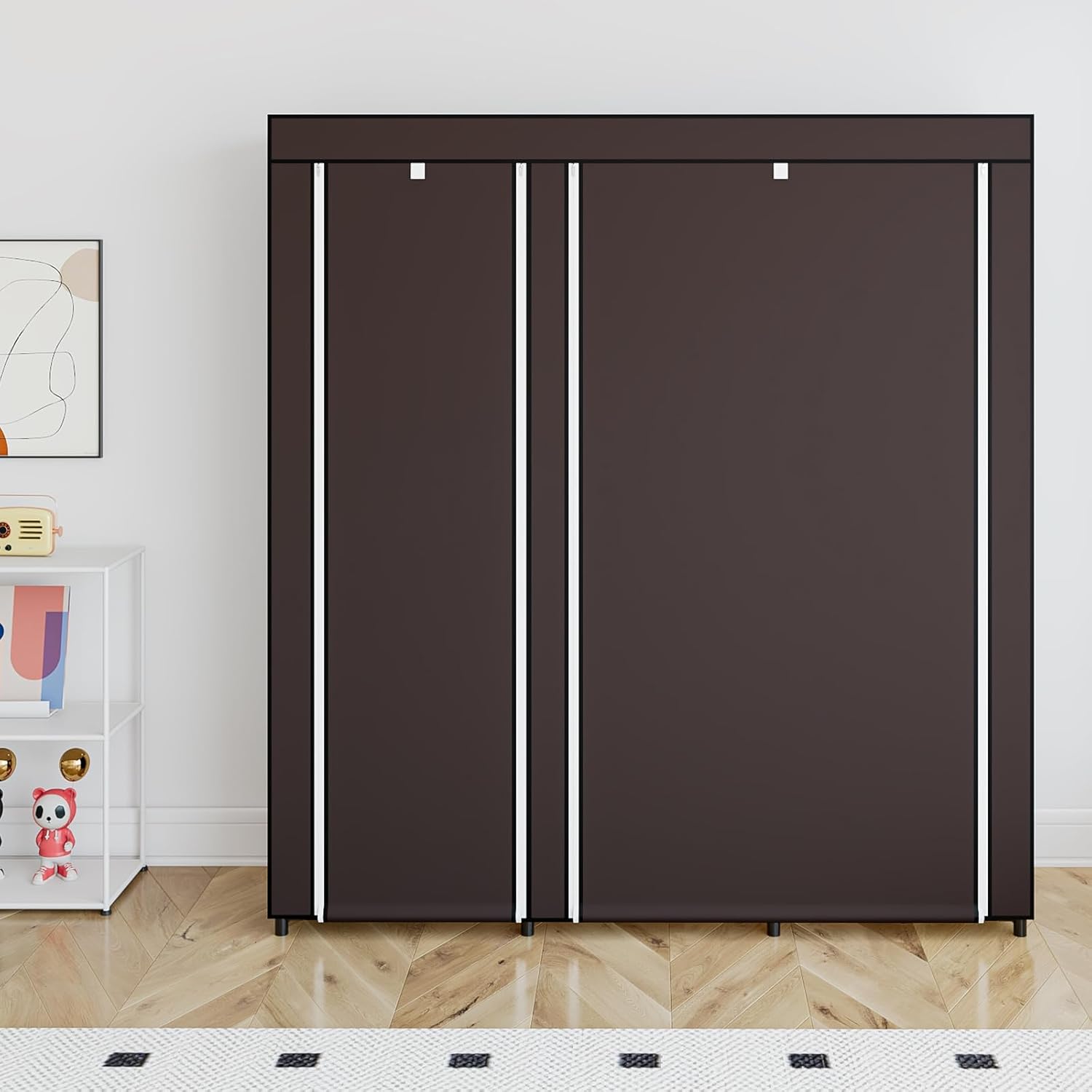 SORCEDAS Portable Wardrobe Closet Storage Organizer Metal Hanging Rack Non-Woven Fabric (Coffee, 51 Inch)