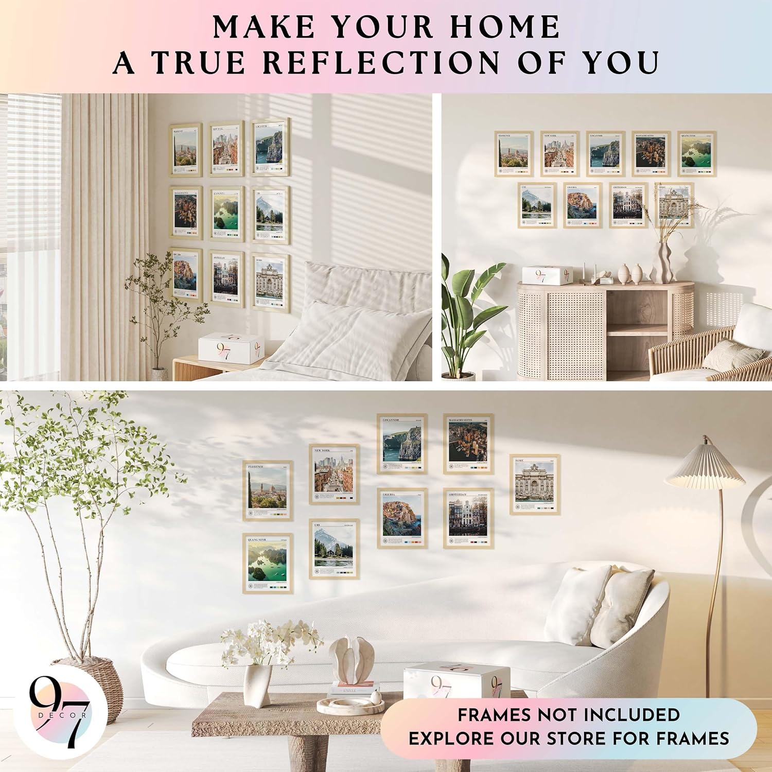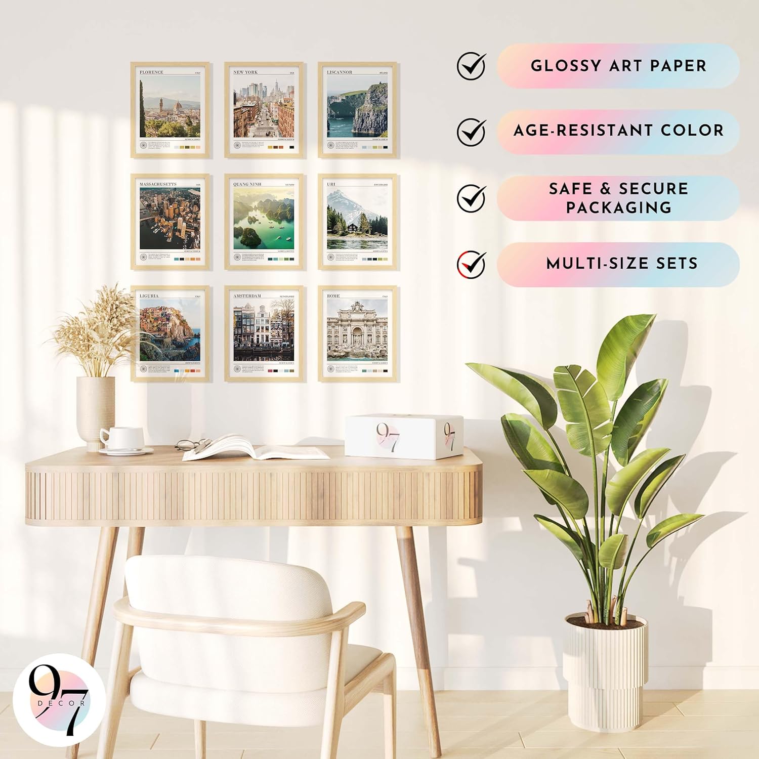 97 Decor Vintage Travel Wall Decor - Around World Travel Wall Art, Trendy City Wall Art Prints, Retro New York Europe Aesthetic Destination Pictures (8x10 Unframed)