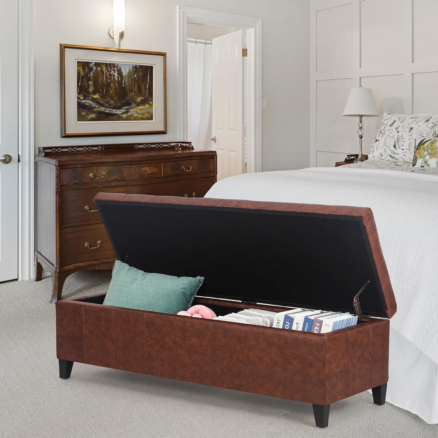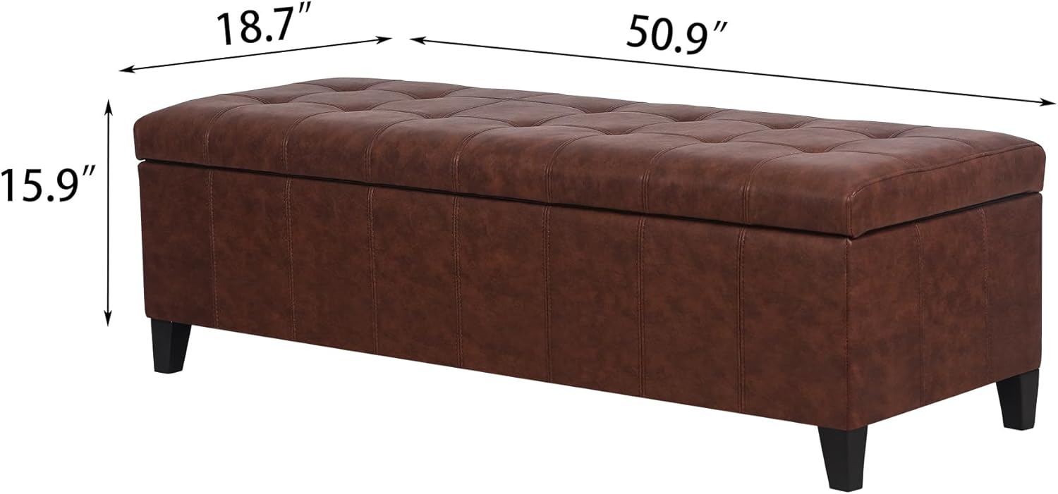 Joveco 51 Inch Storage Ottoman Bench,Tufted Leather Storage Bench for Bedroom (51”,Brown)