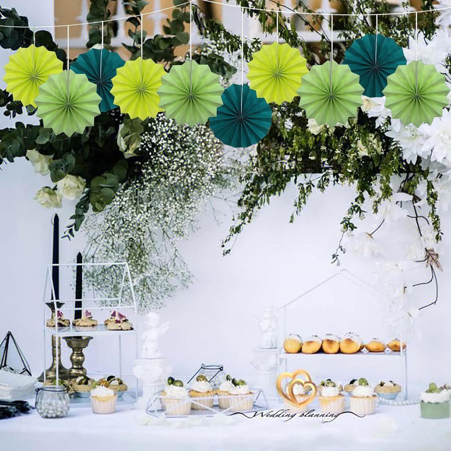 BARTHEW Green Hanging Paper Fans, 8in, 30 Pack, DIY Set, Minimalist Modern Style, Green, Military Theme, Birthday Occasion