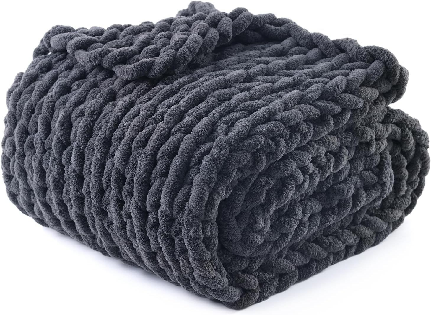- [Warm and Cozy] This blanket is knitted with heavyweight chunky chenille yarn, and heavyweight throw is perfect to stay warm and cozy. When wrap up in it, it will hug you right back and it will have you dreaming of cozy evenings.