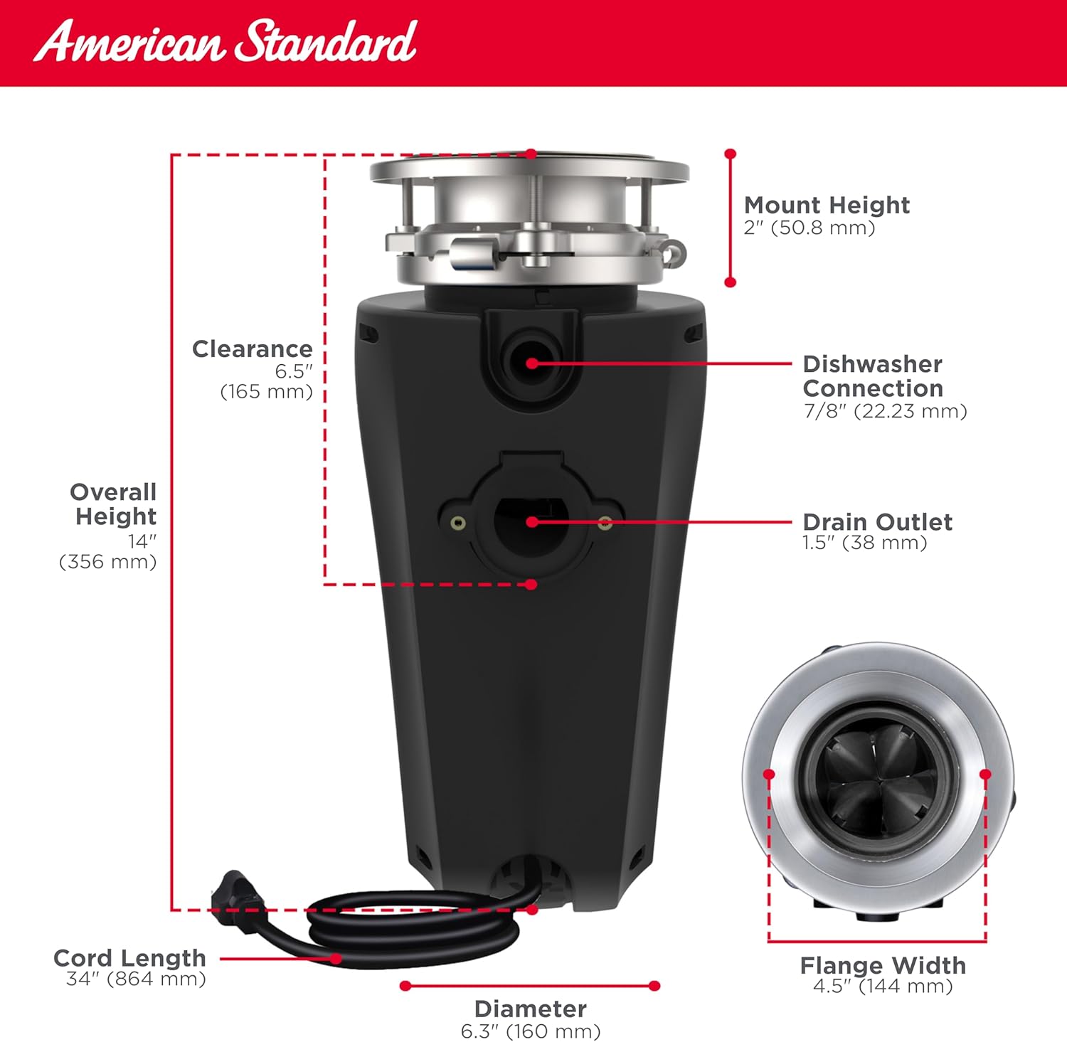- VERSATILE GRINDING: American Standard garbage disposals handle a wide range of food waste, including soft & tough items, grinding them into fine particles that easily pass through your plumbing system and is safe for septic tanks. This makes it suitable for various kitchen needs