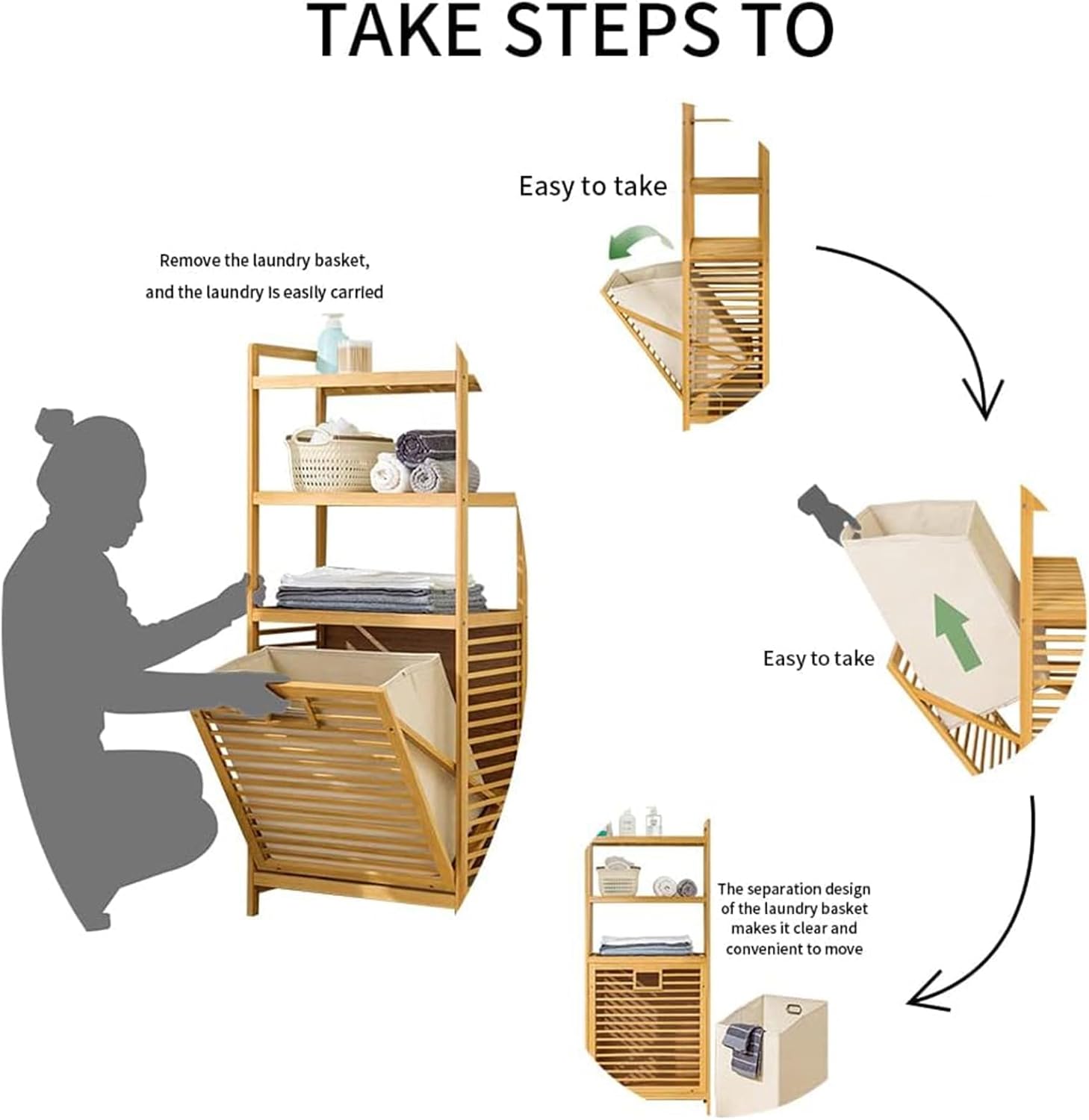 - ăMultifunctional LaundryăFeaturing 2-in-1 design, three-tier storage shelves laundry hamper at the top provide ample space to store laundry supplies, toiletries or decor. Large capacity laundry basket at the bottom provides a large capacity for your clothes and towels.