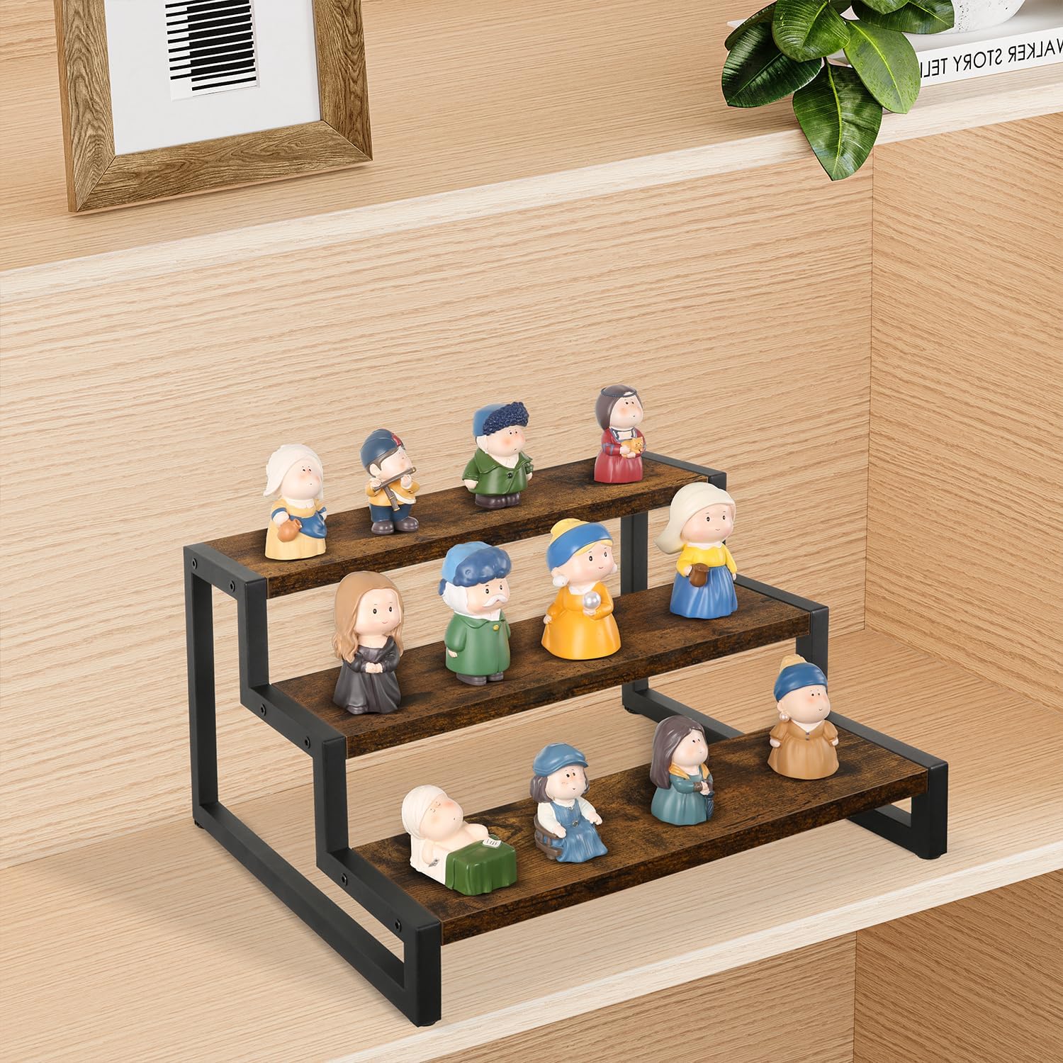 - Quick Setup & Easy Cleaning: You can have this 3-tier display riser stand assembled in 10 minutes with detailed instructions and tools. The wooden surface is waterproof and dust-free, a damp cloth could keep the counter shelf clean. (Assembly tools and accessories are included in the package)