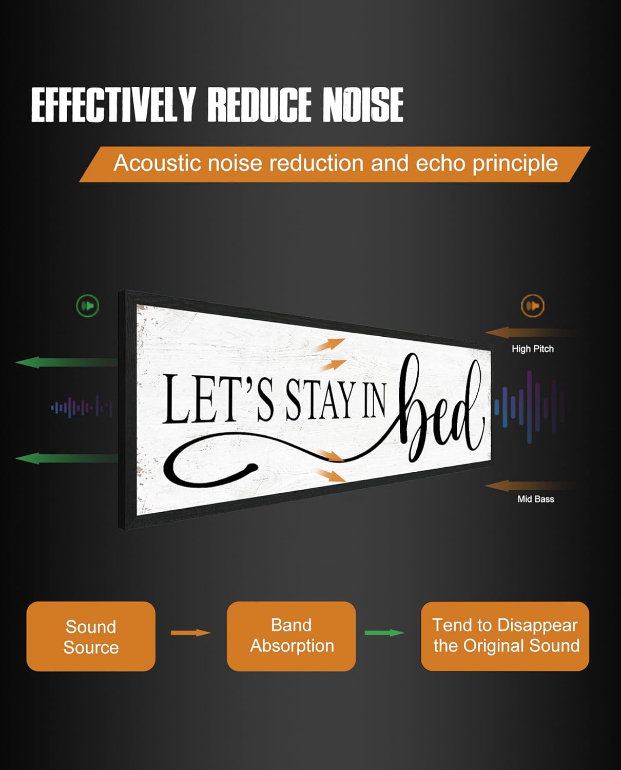 - Above Bed Wall Decor: Exquisite "Let's Stay in Bed" quote print is crafted with high-quality, sound-absorbing materials, this farmhouse sign creates a serene atmosphere in your master bedroom, guest bedroom, or nursery. Elevate your home decor with this above bed wall decor and have a nice sleep throughout the night
