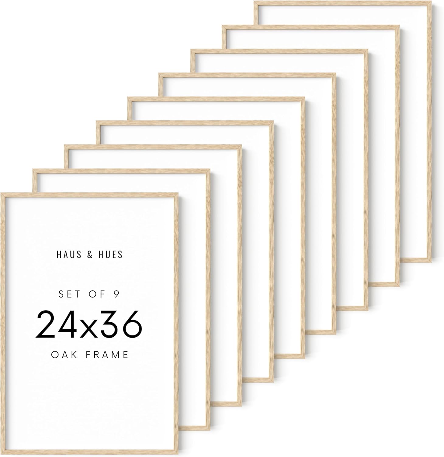 - Poster-Sized Frame for Your Favorite Haus & Hues Artwork: Display your artwork in the most sophisticated way possible with this 24"x36" natural oak wood picture frame! With a sleek minimalist design, this 24"x36" wood poster frame is a simple way to hang any print or poster, whether modern or traditional. It's the 24"x36" frame that will make your posters, prints, and photos stand out from the rest. Hanging hardware is included, so you can display your frame as soon as it arrives!