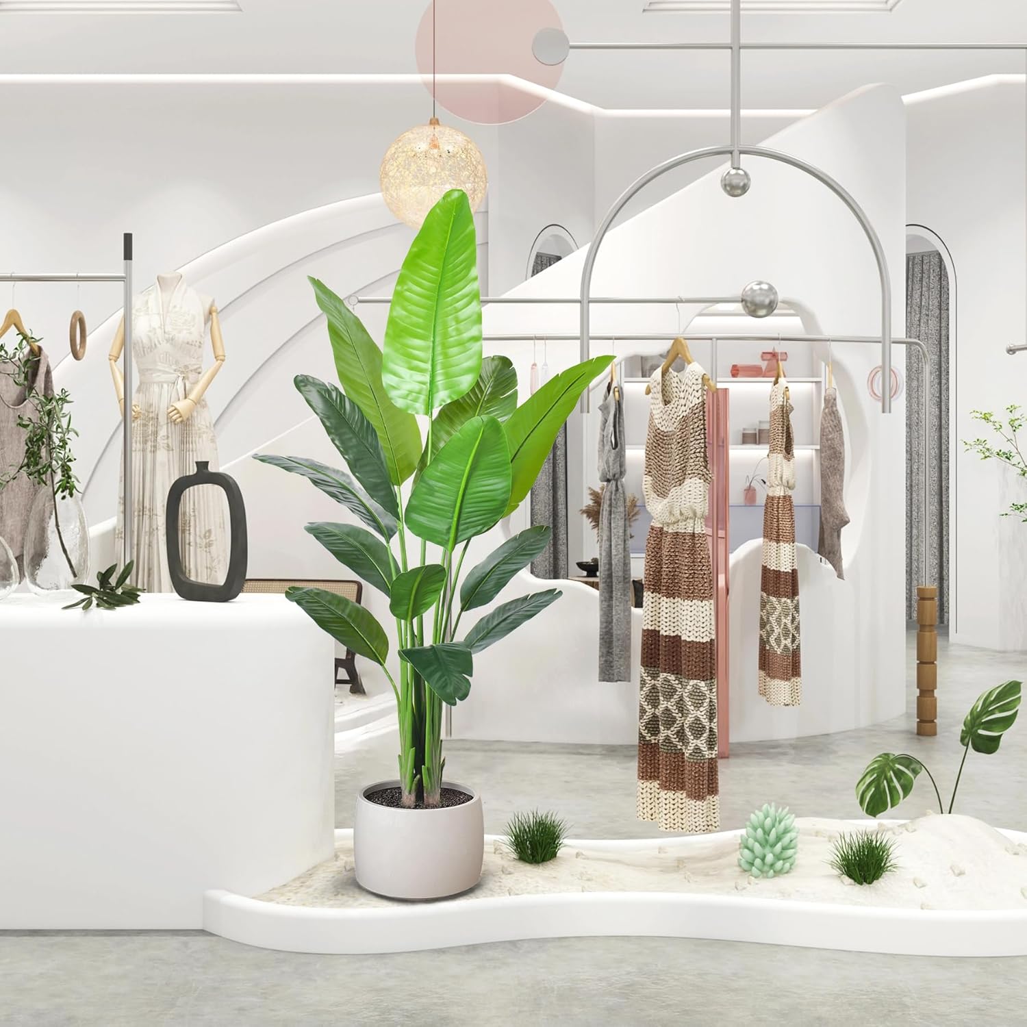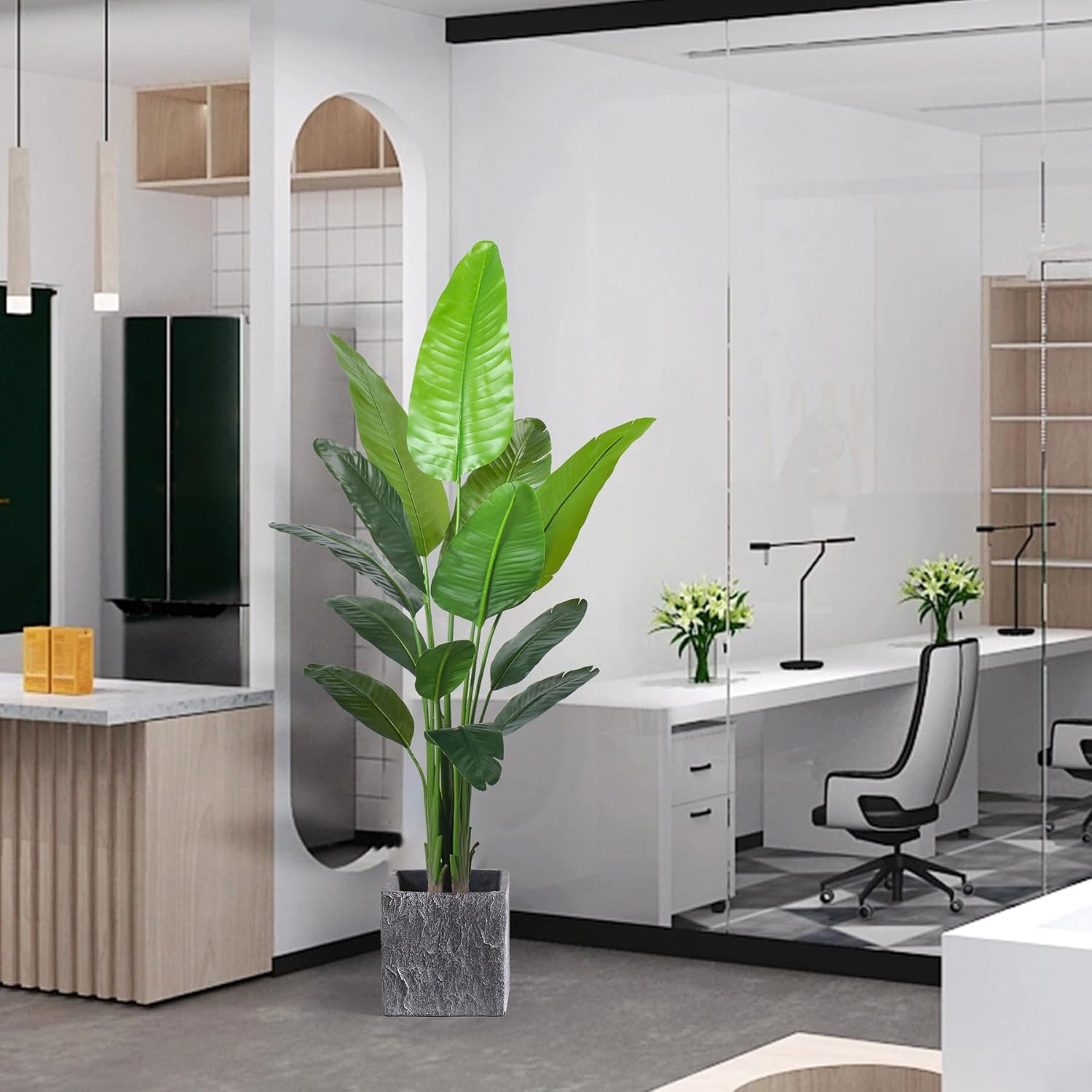 - ăThree Size AvailableăOur artificial bird of paradise tree have three size available;4ftă5ft&6ft,6ft faux plants with 13pcs real touch leaves, 5ft faux plants with 10pcs real touch leaves ,4Ft faux plants with 9pcs leaves.you can choose different sizes of fake floor plants to decorate your house.