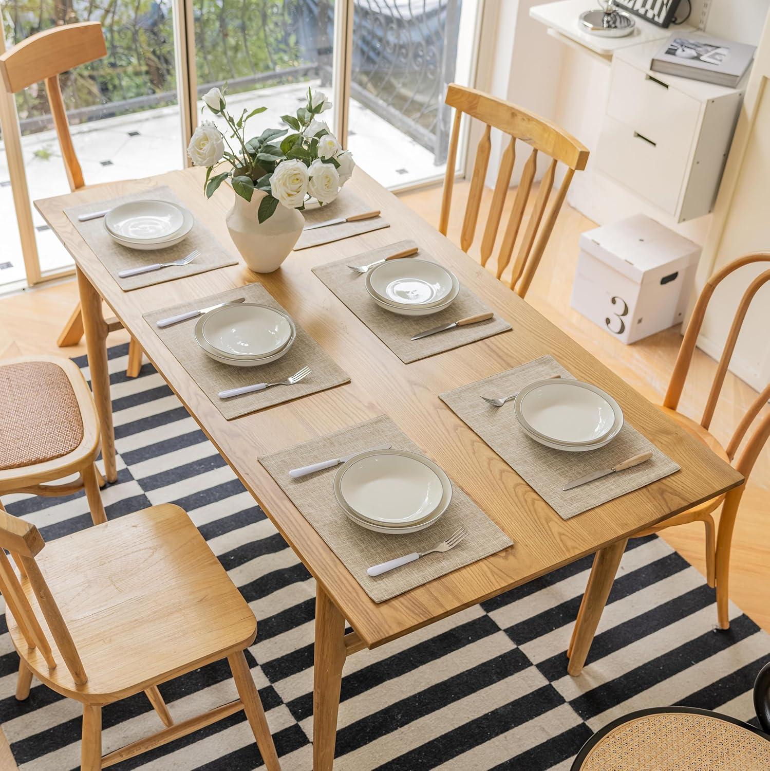 Demetex Burlap Place Mats Set of 6 Heat Resistant Linen Placemats Decorative Wipeable Fabric Table Mats for Dining Kitchen Tables, Burlap