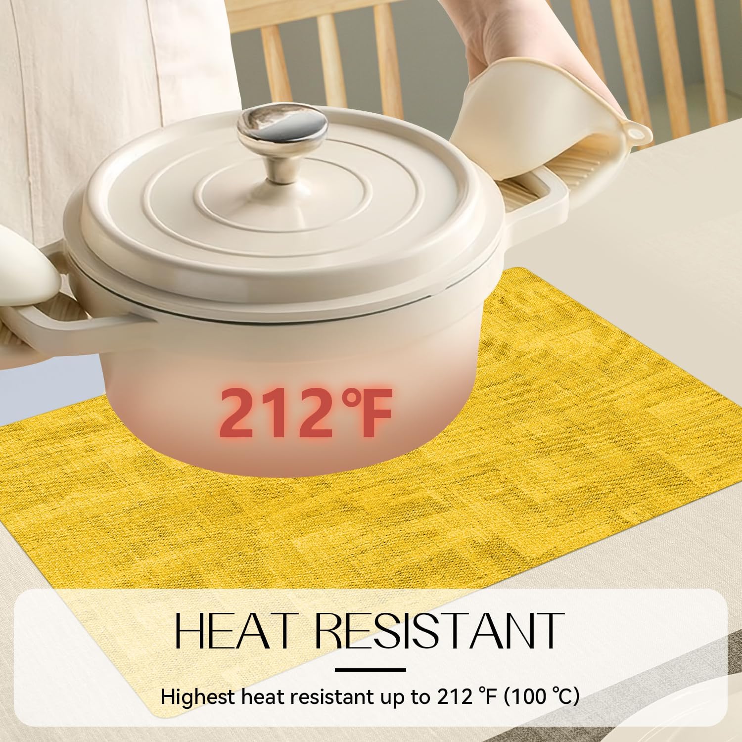 - HEAT-RESISTANT: Both sides are made of long-lasting and heat -resistant faux leather. the thickened placemats (0.12 inch/ 0.3 cm) ensure the heat won’t transfer to your cherish table. Highest heat-resistant can amount to 212 °F (100 °C), from leaving a white heat mark.
