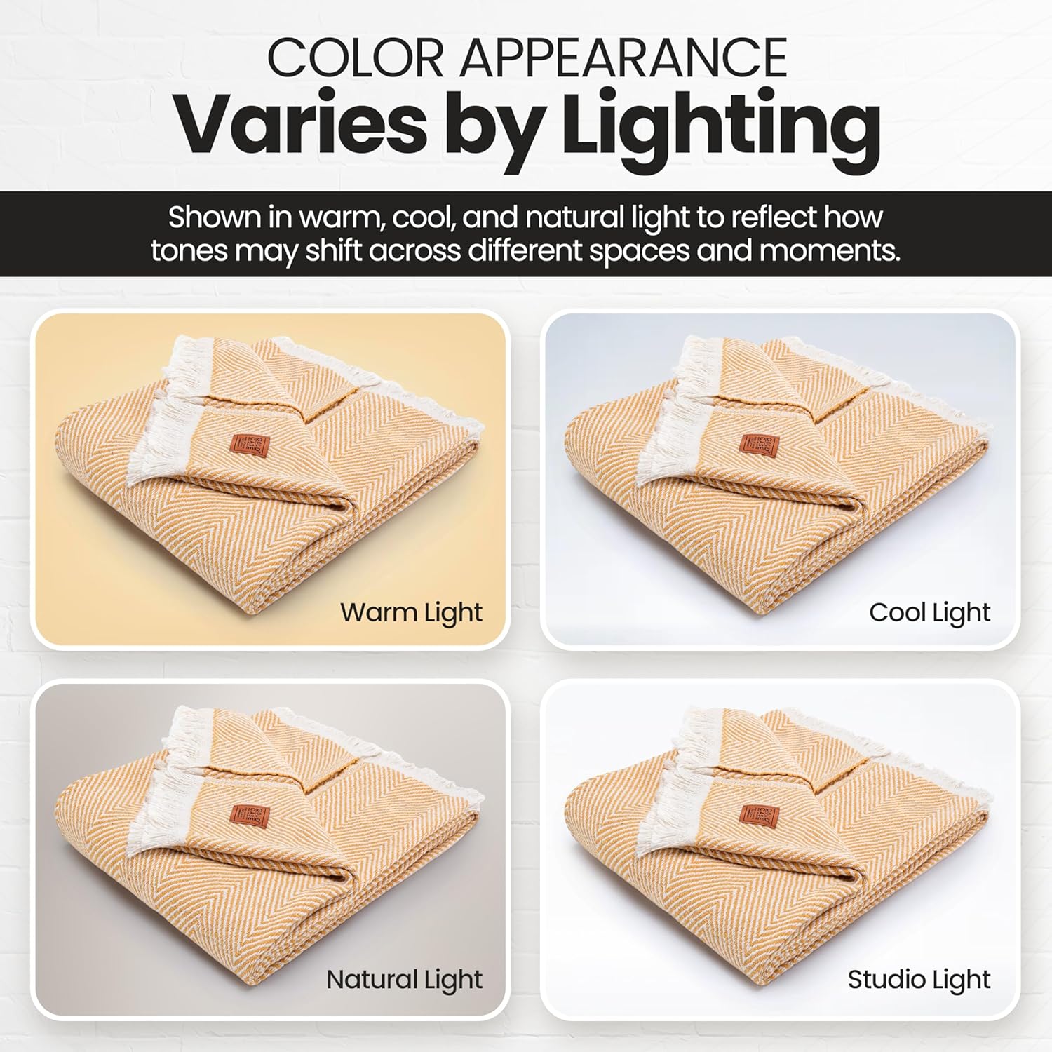Gold Case Throw Blanket for Couch – 100% Recycled Turkish Cotton Blankets & Throws – Elegant Decorative Throw Blankets for Living Room Sofa – Woven Throws for Couch – Elegant Mustard – 60x80