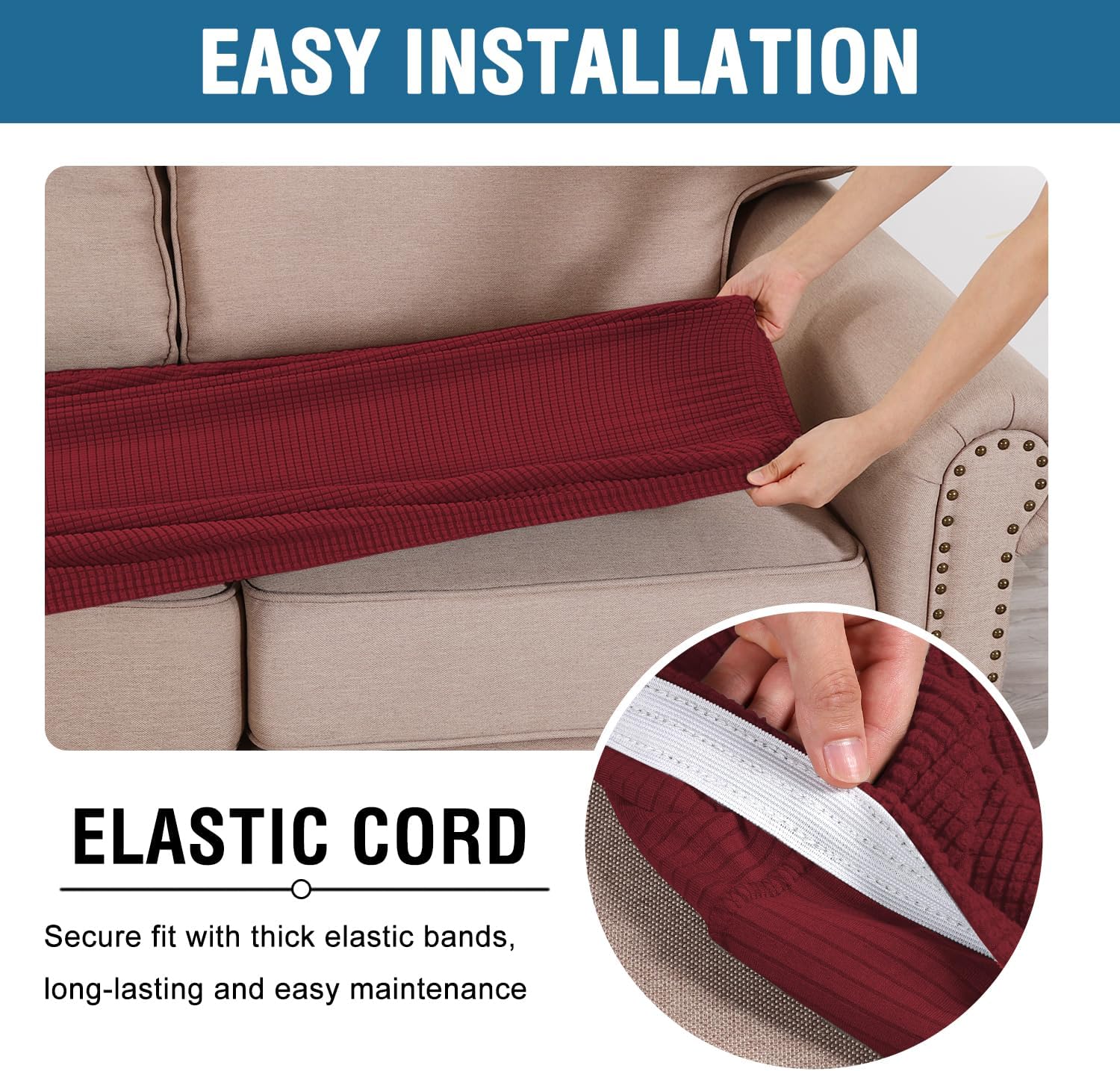 H.VERSAILTEX Super Stretch Individual Seat Cushion Covers Sofa Covers Couch Cushion Covers Slipcover Sets Thick Jacquard Textured Twill Fabric (1 Piece Loveseat Cushion Cover, Burgundy Red)