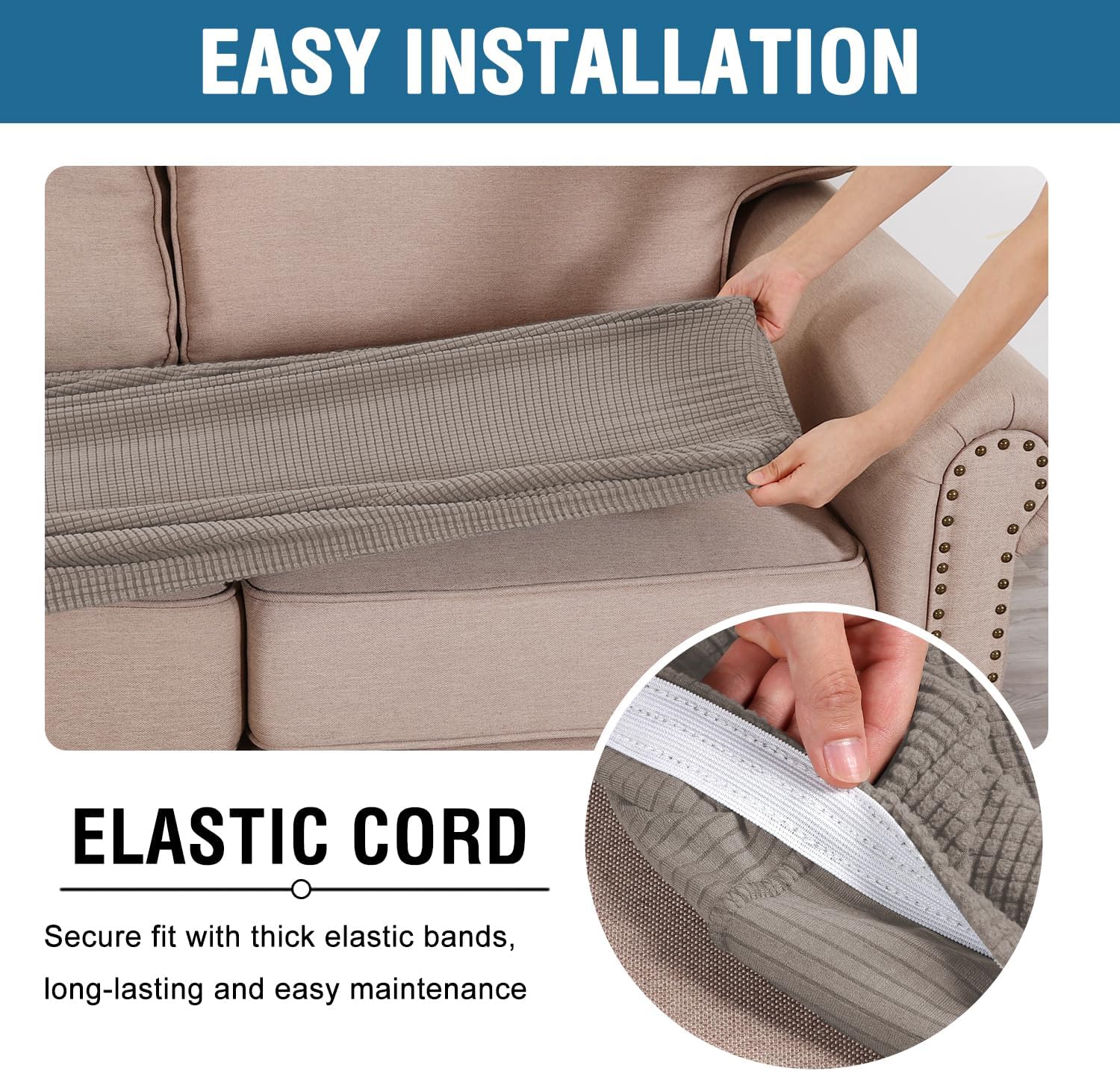 H.VERSAILTEX Super Stretch Individual Seat Cushion Covers Sofa Covers Couch Cushion Covers Slipcover Sets Thick Jacquard Textured Twill Fabric (1 Piece Loveseat Cushion Cover, Taupe)