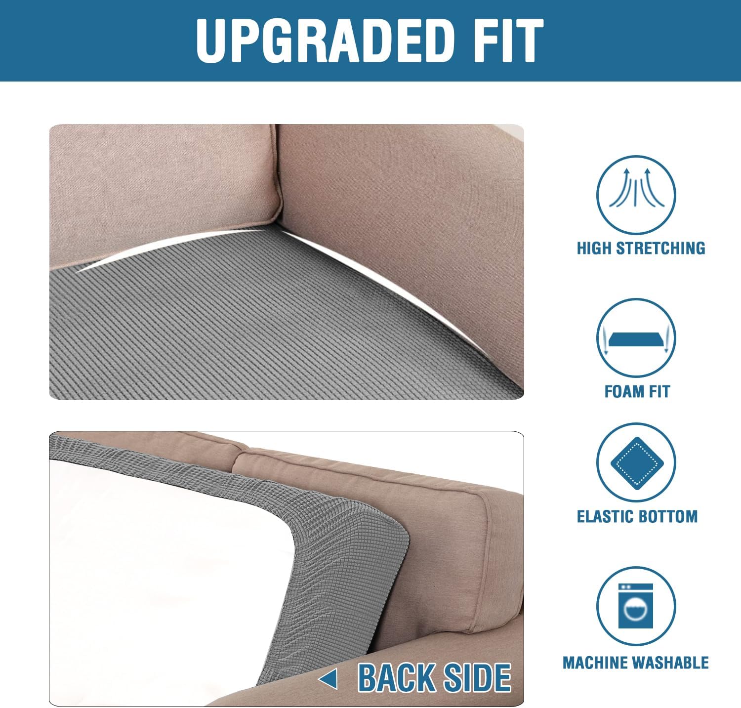 H.VERSAILTEX Super Stretch Individual Seat Cushion Covers Sofa Covers Couch Cushion Covers Slipcover Sets Thick Jacquard Textured Twill Fabric (1 Piece Loveseat Cushion Cover, Dove)