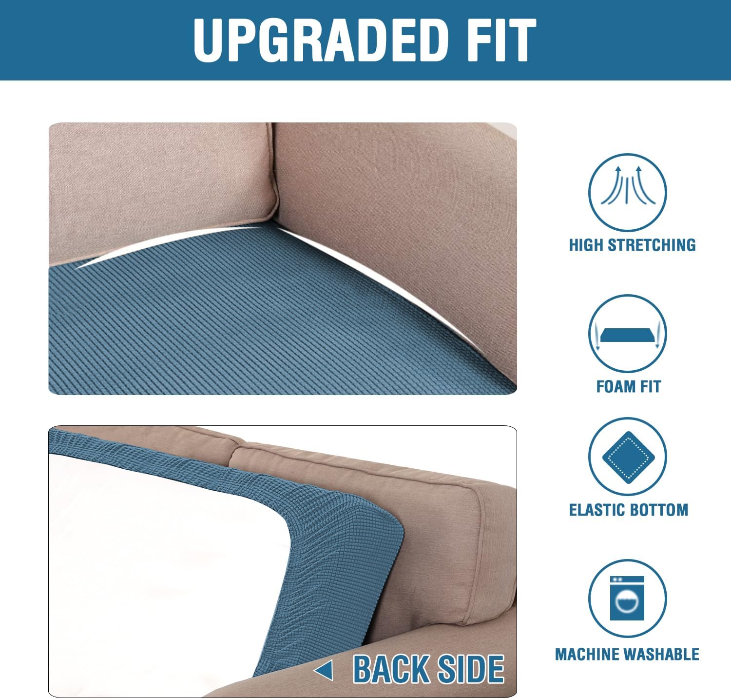 H.VERSAILTEX Super Stretch Individual Seat Cushion Covers Sofa Covers Couch Cushion Covers Slipcover Sets Thick Jacquard Textured Twill Fabric (1 Piece Chair Cushion Cover, Dusty Blue)