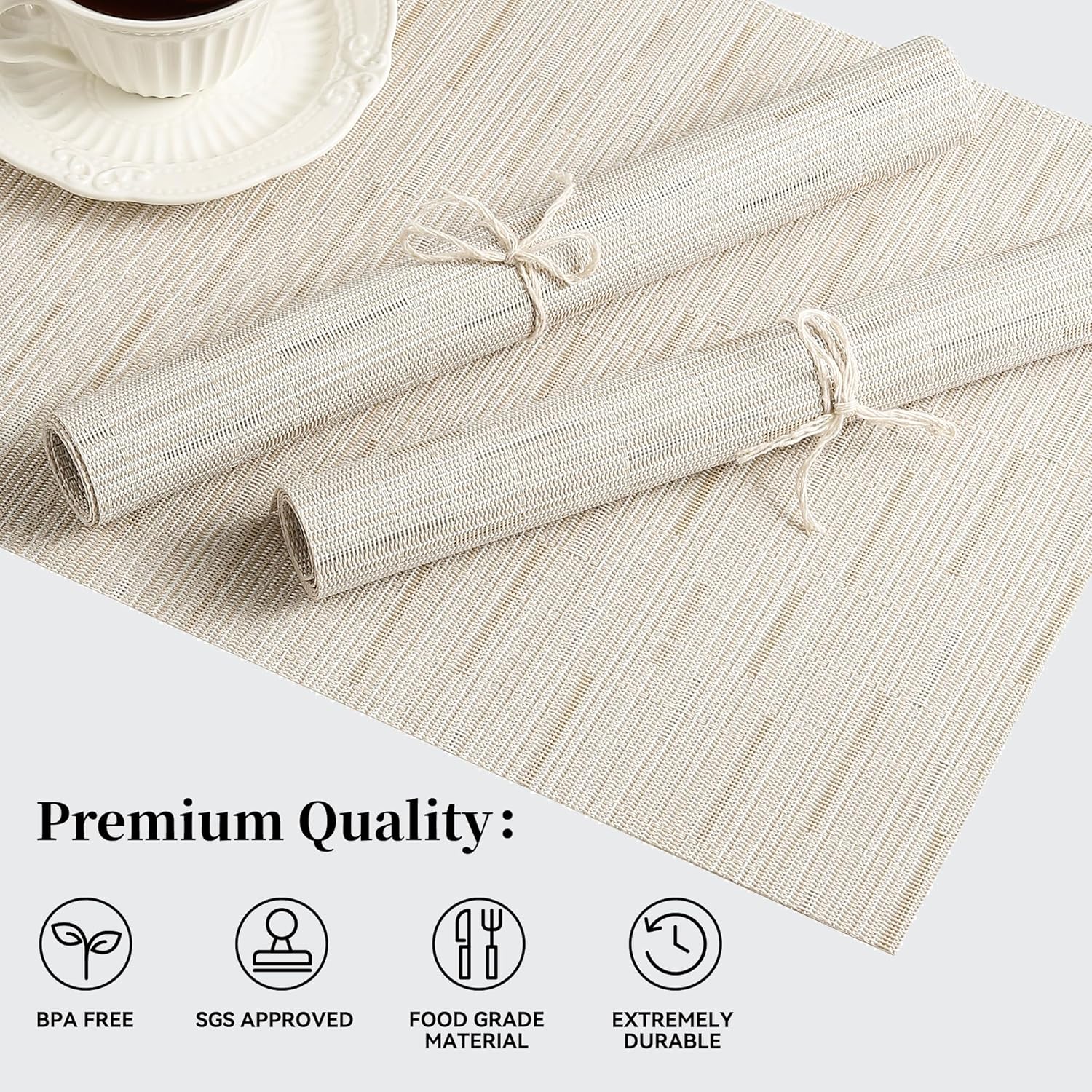 Leetaltree Pale Beige Placemats Set of 6 - Heat Resistant Non-Slip Place mats for Dining Table, Washable Durable PVC Vinyl Woven Table Mats(Pale Beige, 6)