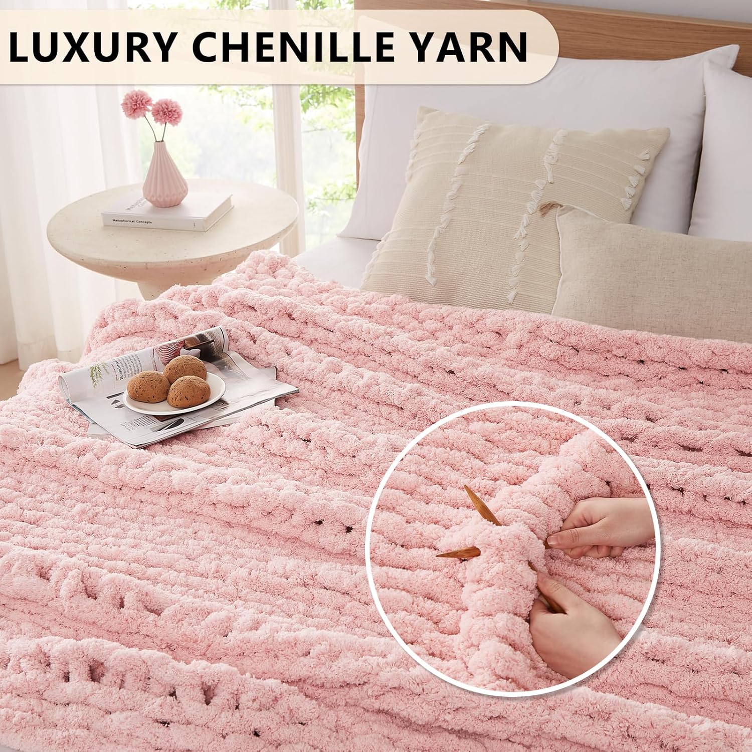 - 100% Handmade Chunky Knit Blanket: Our knit blanket throw is made from 100% hand-woven fabric with premuim Chenille yarn, excellent handcrafted knitting improves yarn density to create a warm and soft touch, full body hug to immerse you in tenderness