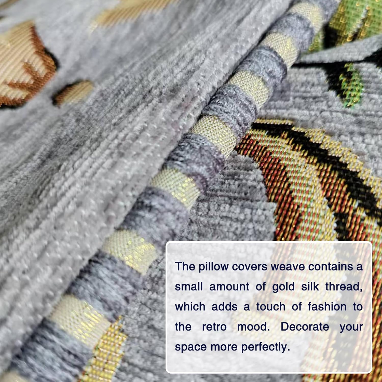 2 Pcs Grey Chenille Vintage Embroidered Throw Pillow Covers 18x18in,Grey Tassel Vintage Pattern Pillow Covers, Floral Embroidered Cushions Covers for Sofa Couch Bed Chairs Car