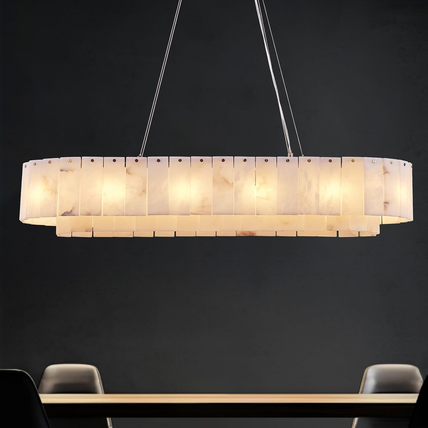 Alabaster Rectangular Chandelier for Dining Room, L39in Modern Chandeliers, Adjustable Marble Pendant Light Fixture, Rectangle Chandelier for Dining Table Living Room Kitchen Island (Bulbs INCL)