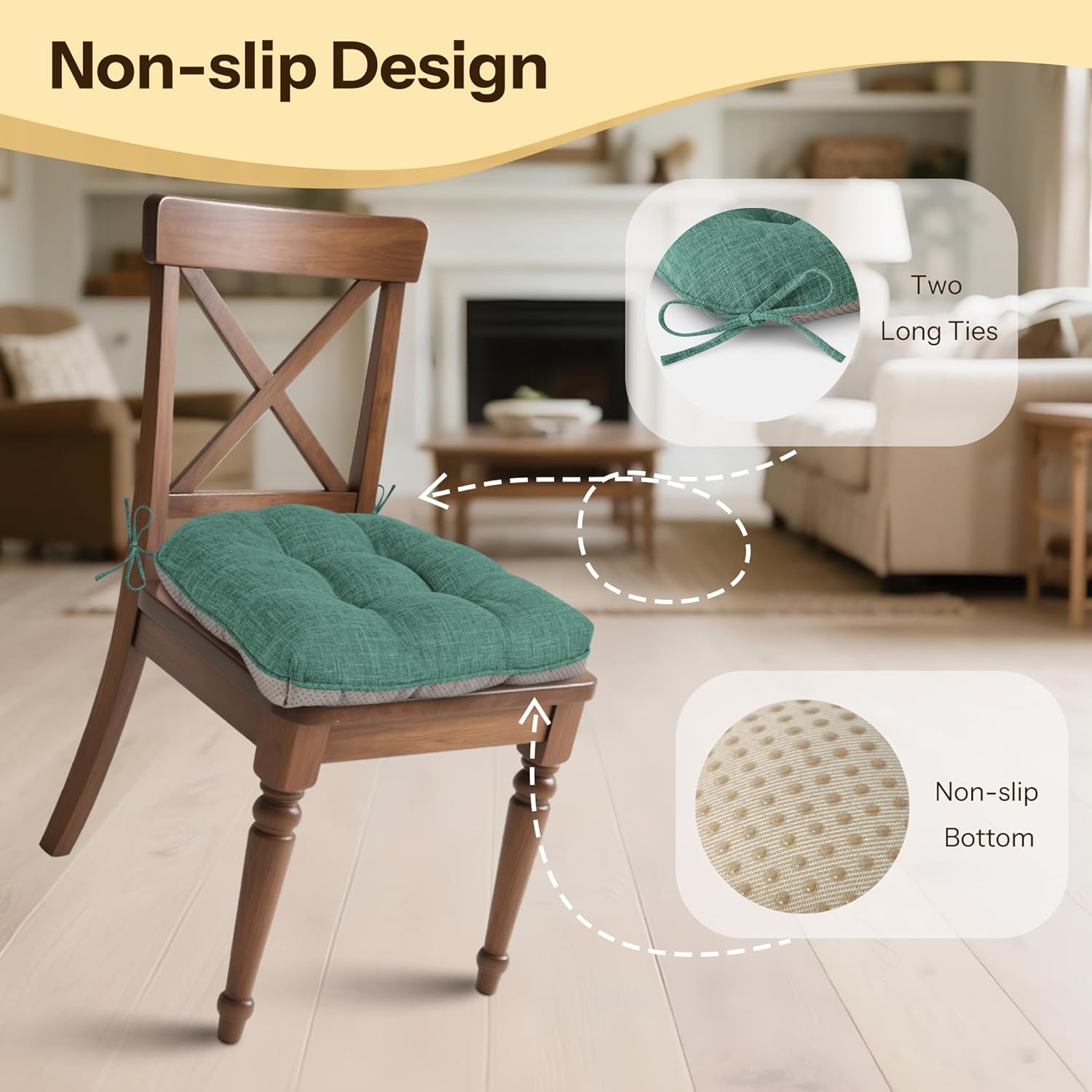 Non Slip Chair Cushions for Dining Chairs Set of 4 Kitchen Chair Cushions 18"x18"x3" Turfted Chair Pads Comfortable and Soft Seat Cushion with Ties, Dark Green