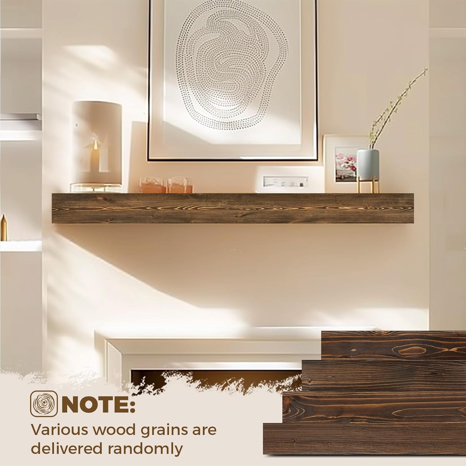 - Wall-Mounted Design: The fireplace mantels feature an elegant floating design, offering a clean and tidy appearance, making them the perfect choice for displaying decorations or storing daily items. These mantels are not only furniture, they are a lasting investment in the beauty of natural wood, carefully processed to suit your home even better