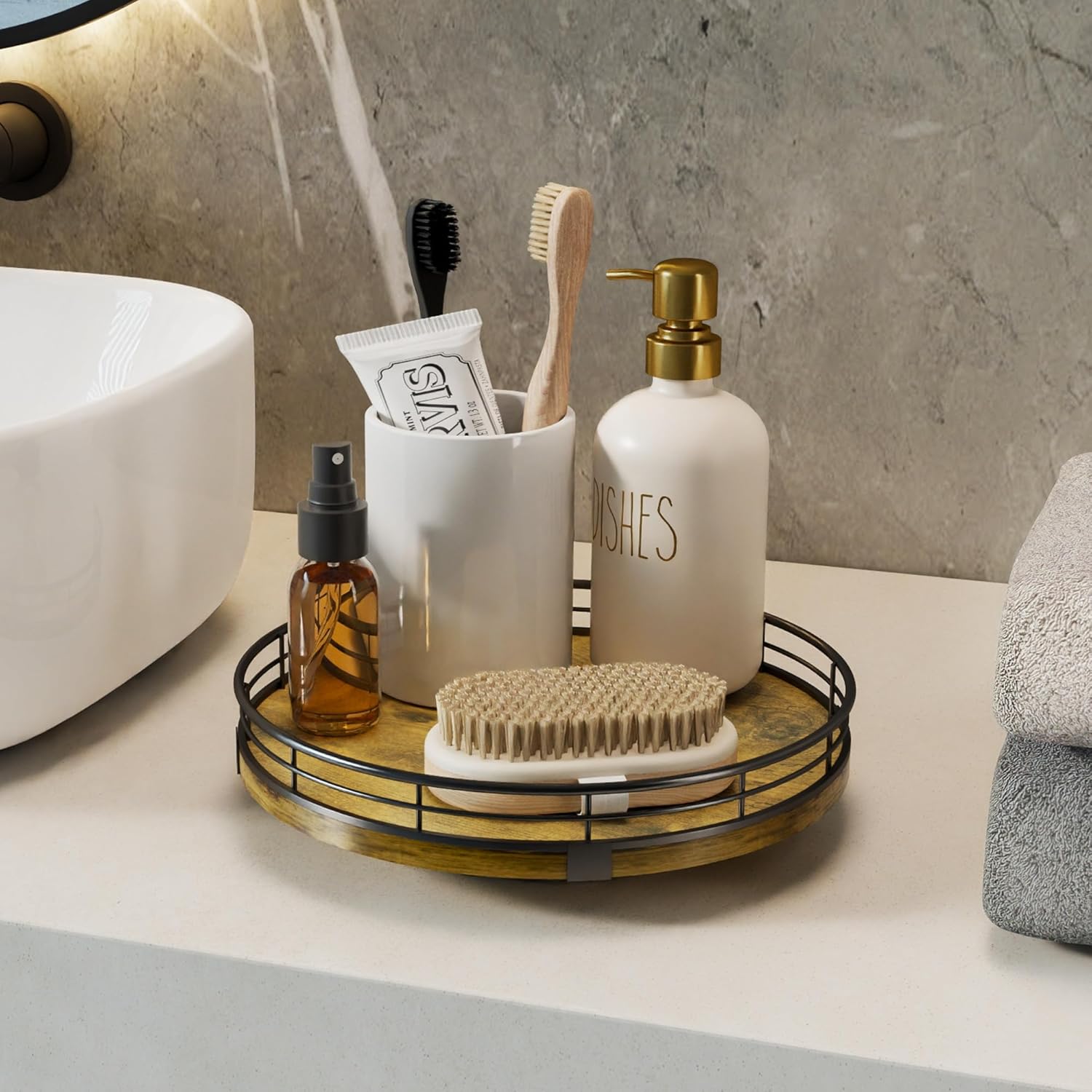 - Wide Application - The lazy susan organizer adopts handmade craftsmanship. Its MDF material is strong and long-lasting, not easy to wear and has no odor. The surface has exquisite texture, creating a unique rustic style