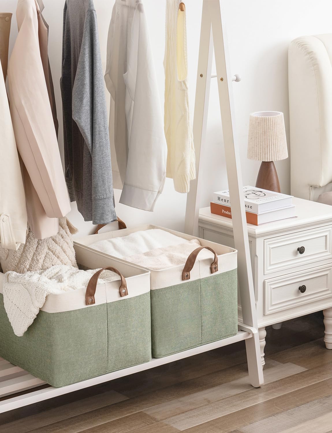 StorageWorks Storage Bins, Fabric Storage Bins for Shelves, Extra Large Storage Baskets with Metal Frame, Closet Baskets and Bins with Handles, Jumbo, Green and White, 2-Pack