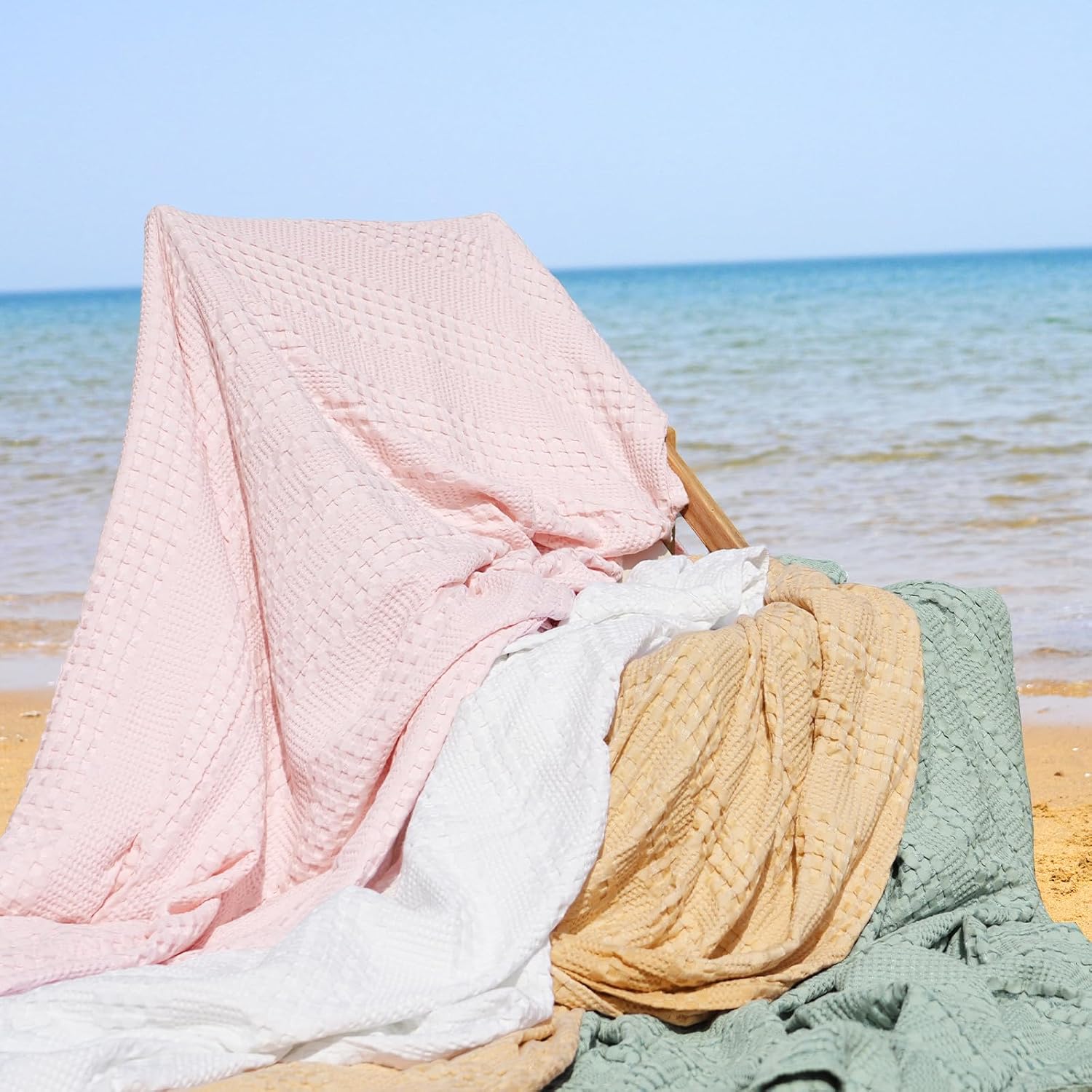 - Exquisite Waffle Weave Design: The uneven waffle three-dimensional design, coupled with the exquisite weaving process, makes our blankets fluffy and durable. The special waffle fabric helps to circulate the air, regulate the temperature, absorb moisture, and enhance the permeability of the blanket, which is another important reason for the comfort of the blanket. In addition, the elegant and fashionable waffle blanket provides a new choice for your home decoration.