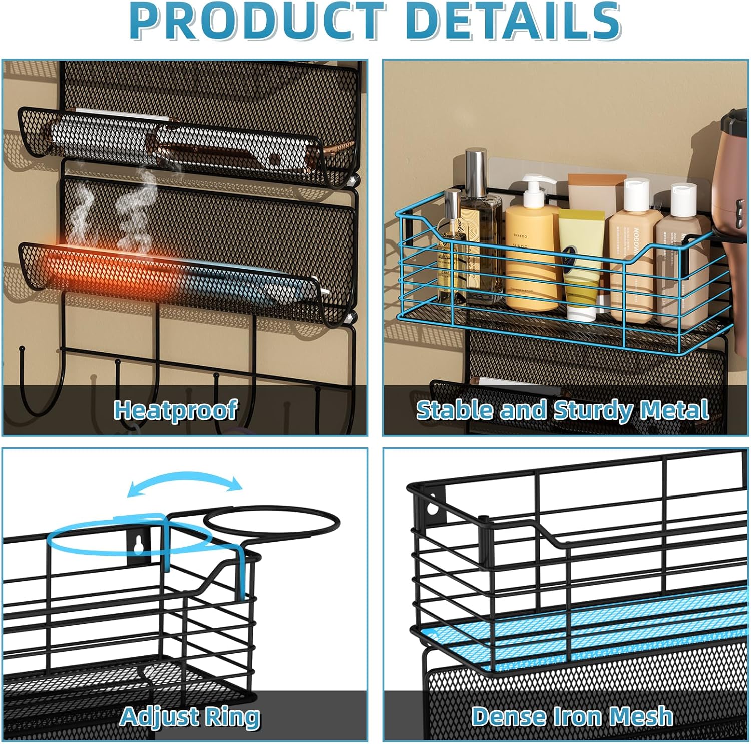 - 【High-Temper Resistant】The whole of the hair tool shelf is made of high-quality metal, which is sturdy durable, and high-temperature resistant, put hot hair tools on it safely.