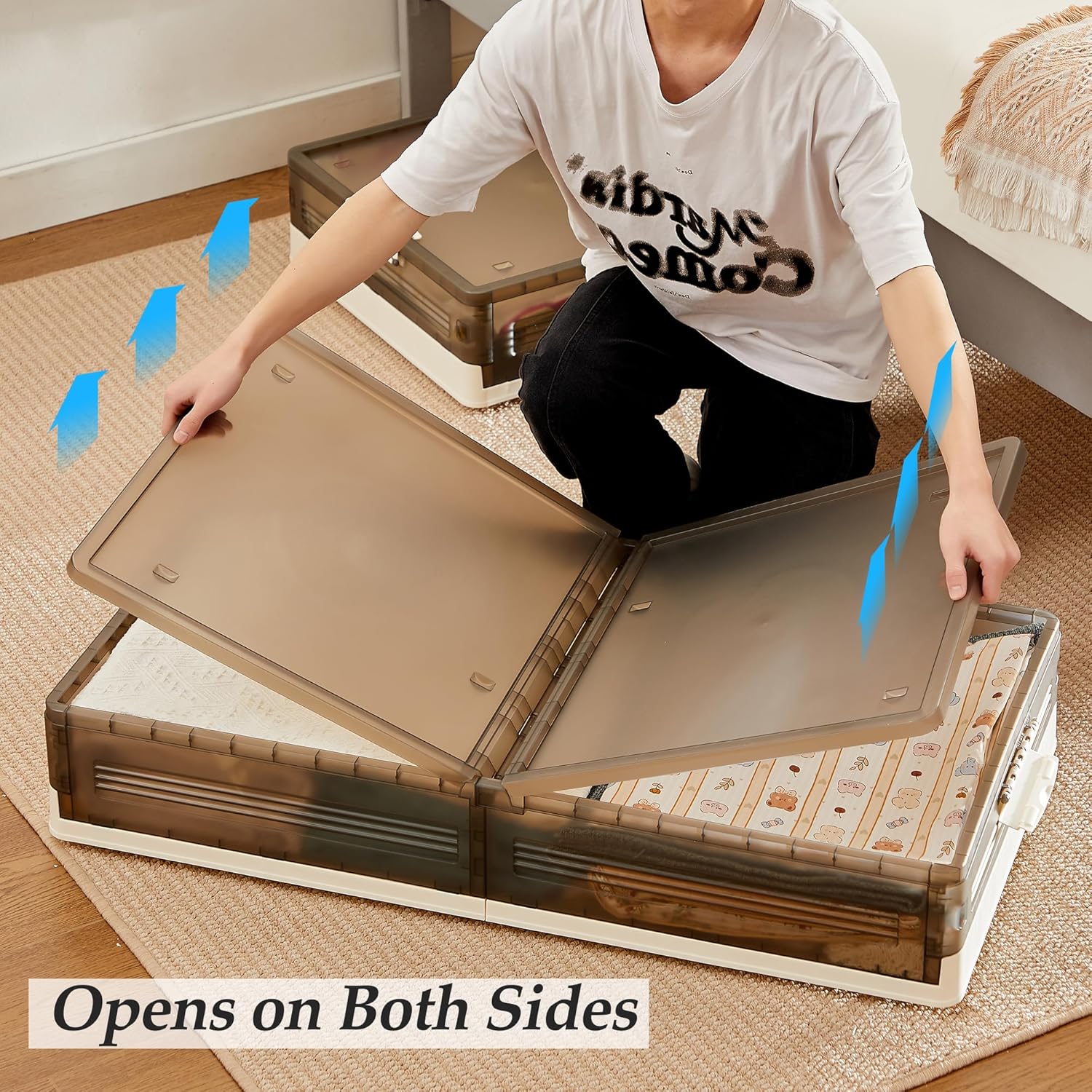 - 【Foldable Storage Boxes】Our storage bins with lids under bed are easy to assemble – simply unfold the four sides, connect them, and add the lid and wheels. When not in use, you can fold them and place under bed storage containers plastic in a corner or under the sofa, saving a significant amount of space.