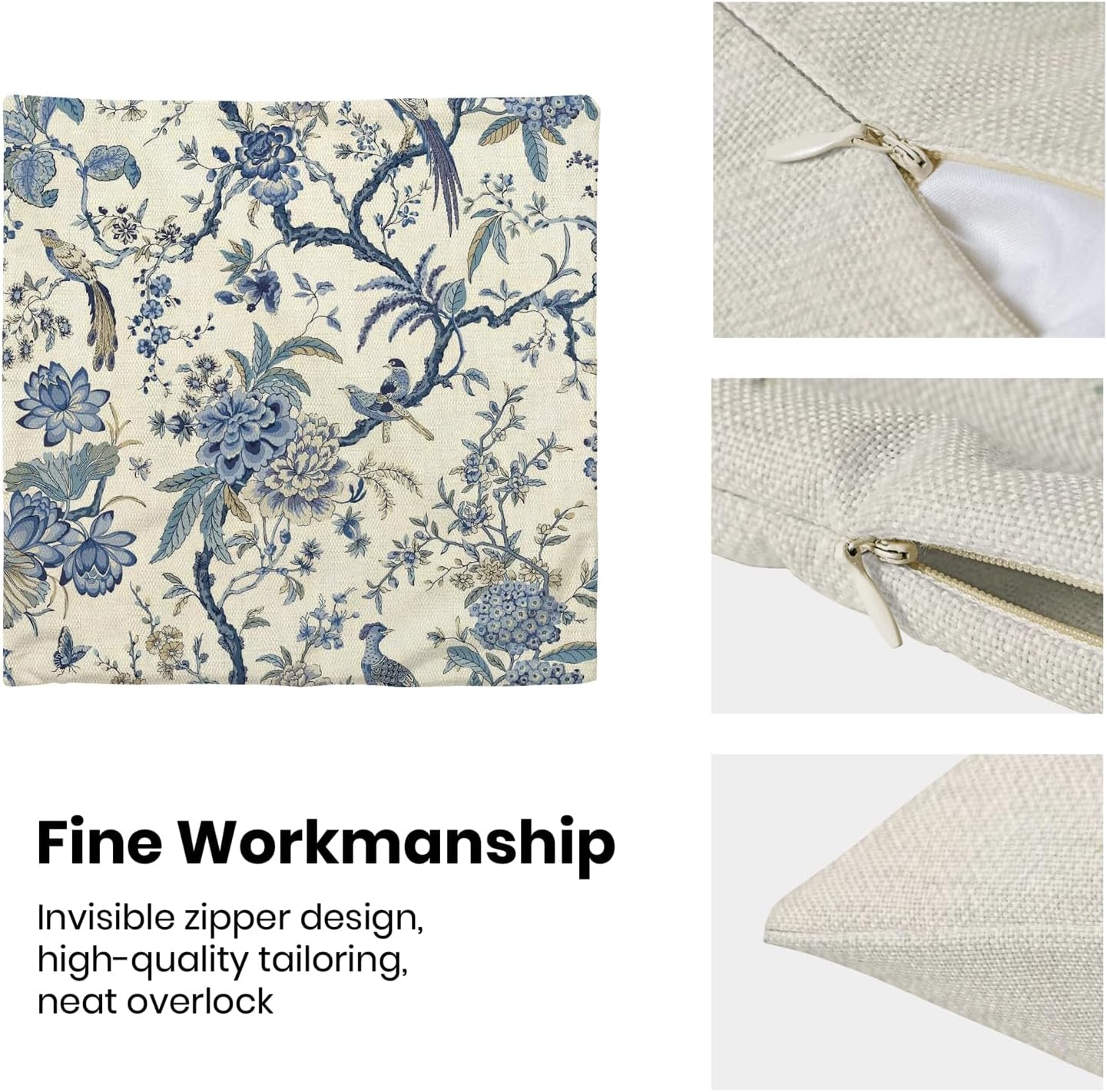 - 【Spring Pillow Covers】 Our Chinoiserie floral throw pillow covers 20x20 inch are made of excellent breathable polyester cotton fabric. The blue and white floral decorative pillow covers is durable, soft and skin-friendly. The plant outdoor pillow covers adopt exquisite edging technology and four sides of our floral pillow covers are sewn firmly, which is not easy to open the line.