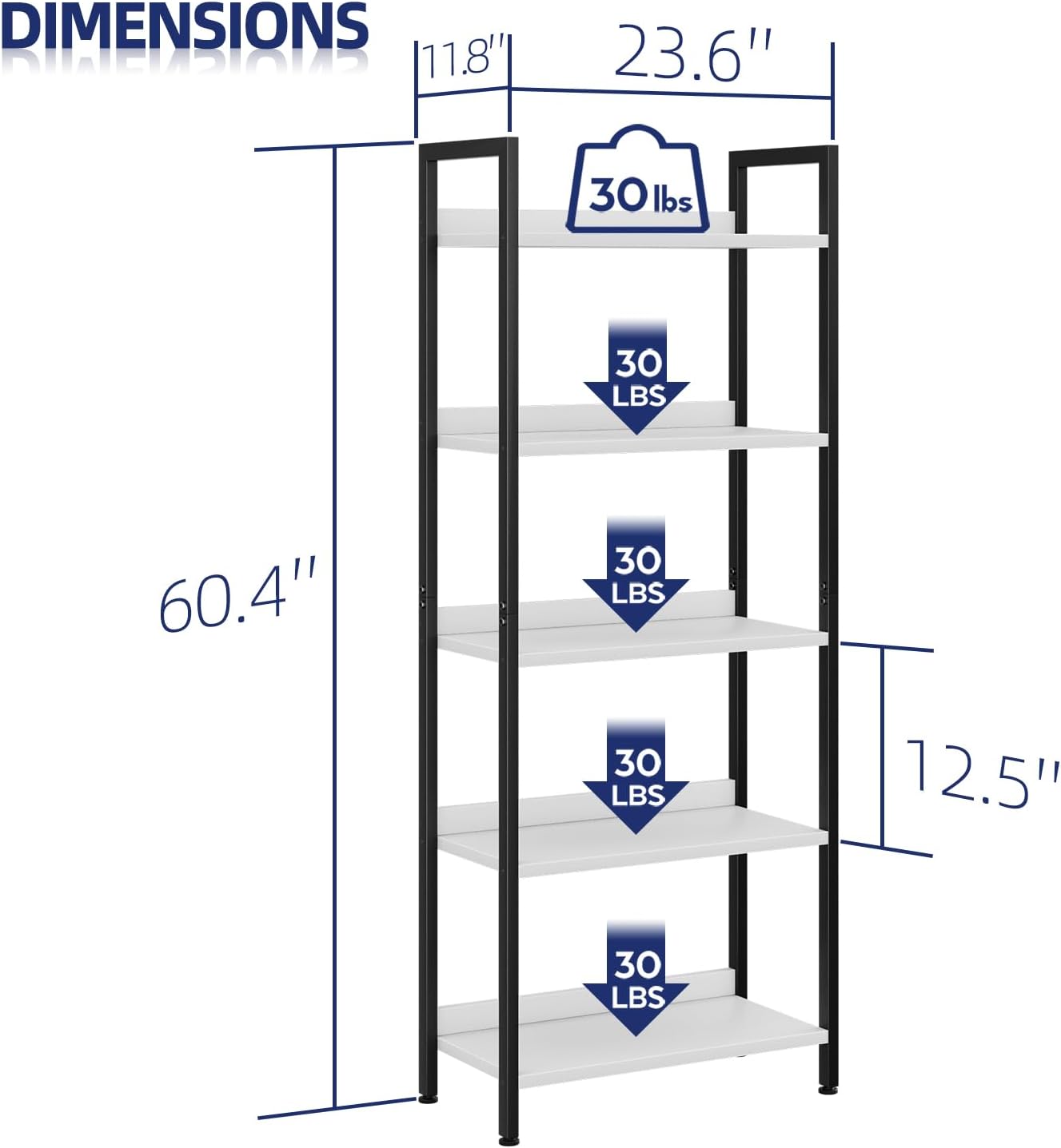 NUMENN Bookshelf, 5 Tier Bookshelves, Home Office Bookcase Shelf Storage Organizer, Free Standing Storage Shelving Unit for Bedroom, Living Room and Home Office, White&Black