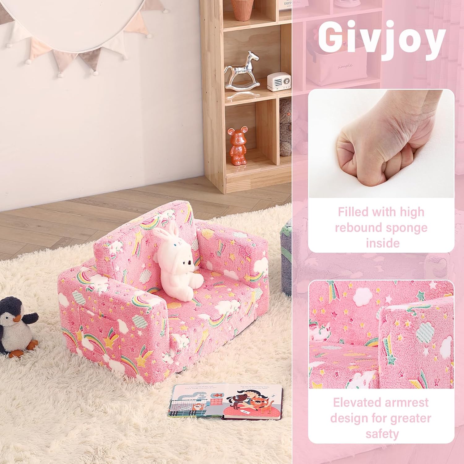 - ăMultifunctional 2-in-1 Design Unique Present for 18 months+ Boys and GirlsăThe 2-in-1 children's sofa couch is a wonderful present for all kids & toddlers on Birthdays, Christmas, or other occasions! Your child will find this small kids' couch a perfect spot for relaxing, reading, playing, or enjoying their favorite TV shows. Meanwhile, with both modern design and fashionable colors, this small couch can fit any room and add great vitality to your house.