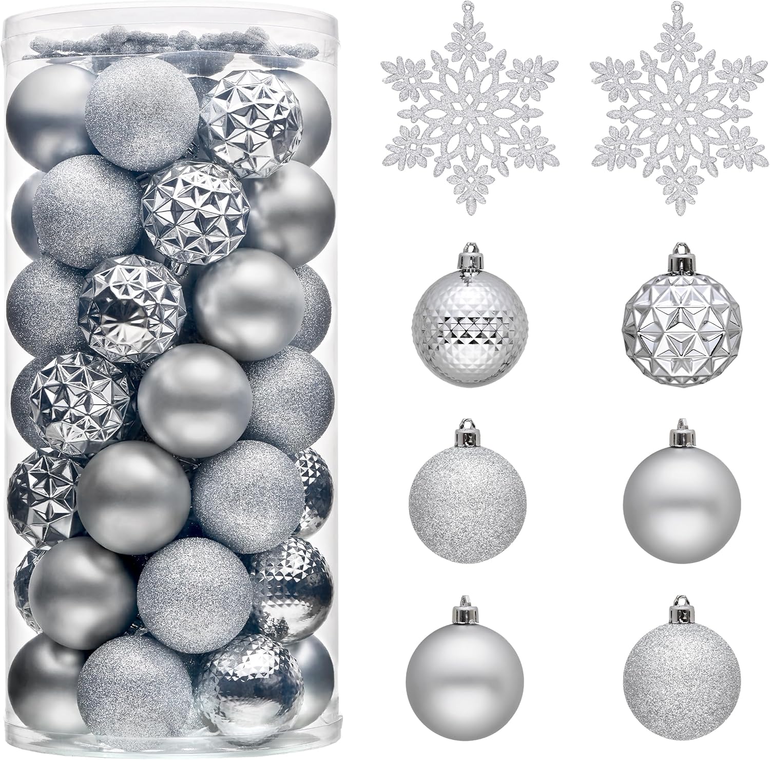 - 【Package and Size】This ornament ball set include 50pcs Christmas ornaments measuring 2.36 inches in diameter, featuring seamless connections for a polished look