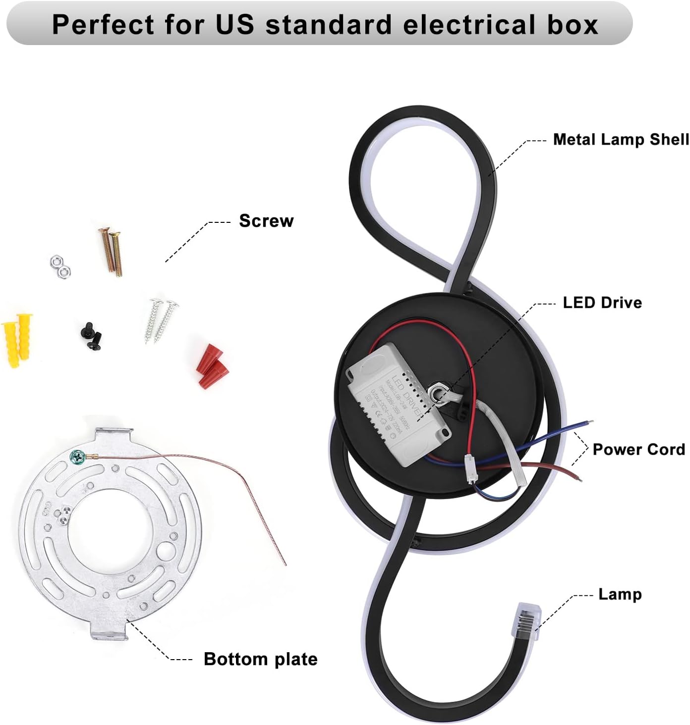 - [Creative Shape] The shape of the musical symbol is fitted with a base suitable for American junction boxes, timeless minimalist design that perfect combination with modern, urban, minimalist and other decoration styles for the living room and bedroom.