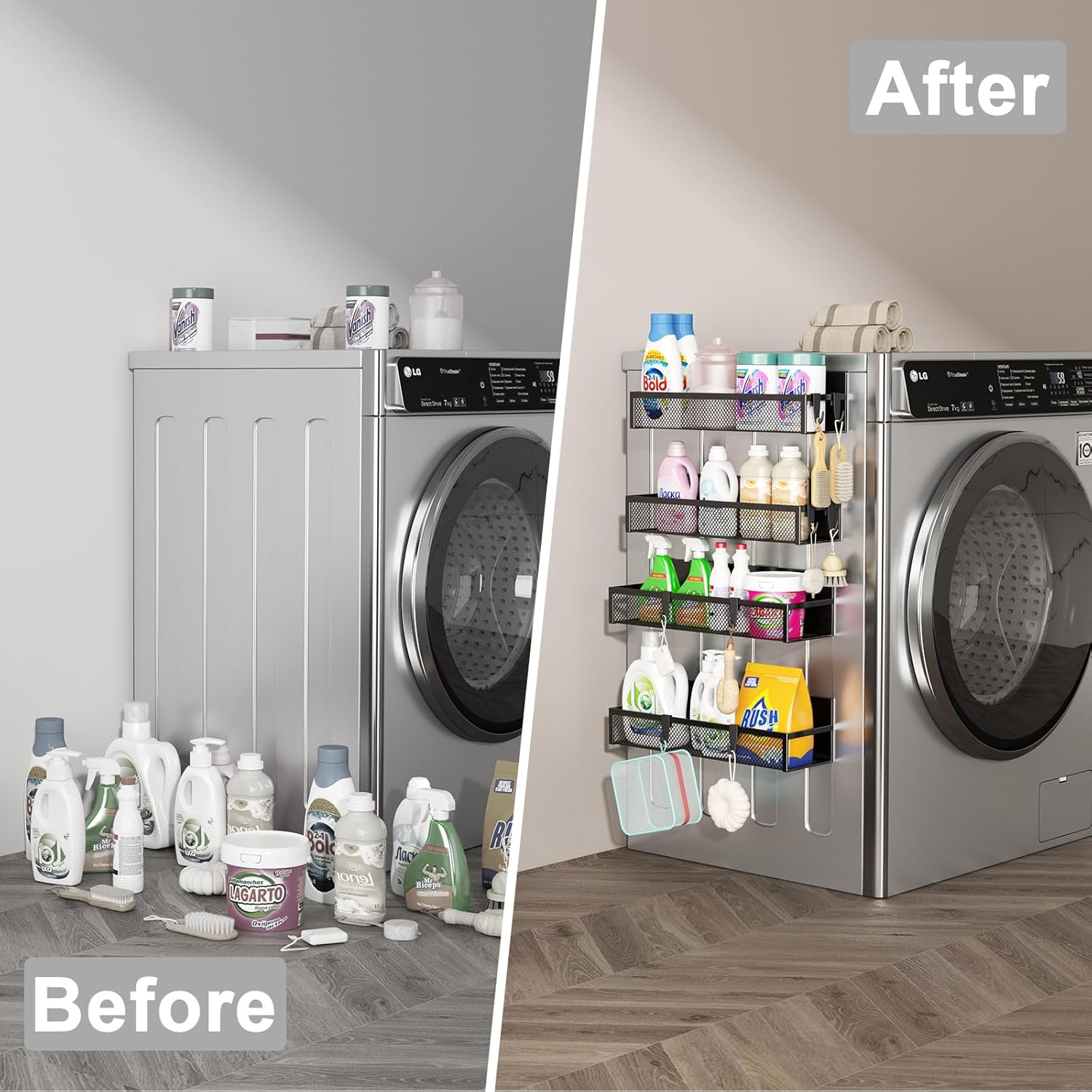 - Multi-Use Magnetic Refrigerator Organizer: Can be used on all magnetic surfaces of your home, kitchen or laundry room, such as the side wall of your refrigerator to hold spices, oils, utensils, towels or other essentials. Our moveable refrigerator shelf can also be used on the side of an oven, microwave, coffee machine, washing machine, classroom, whiteboard or tools wall for storage.