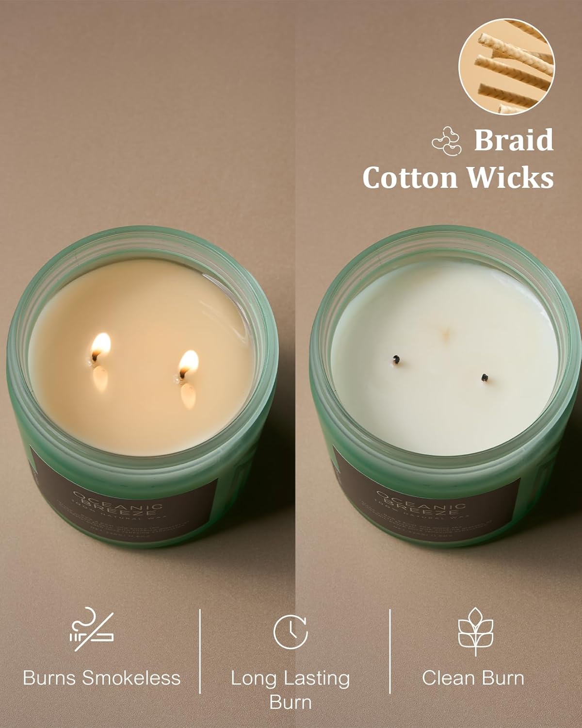 - π³ Clean Consistent & Even Burn - Using 2 American made lead-free cotton wicks for a even burn result. They're cotton flat braid wicks with paper throughout, providing increased rigidity and burn more consistently than 100% cotton wicks. Designed to reduce carbon buildup which leads to black soot.