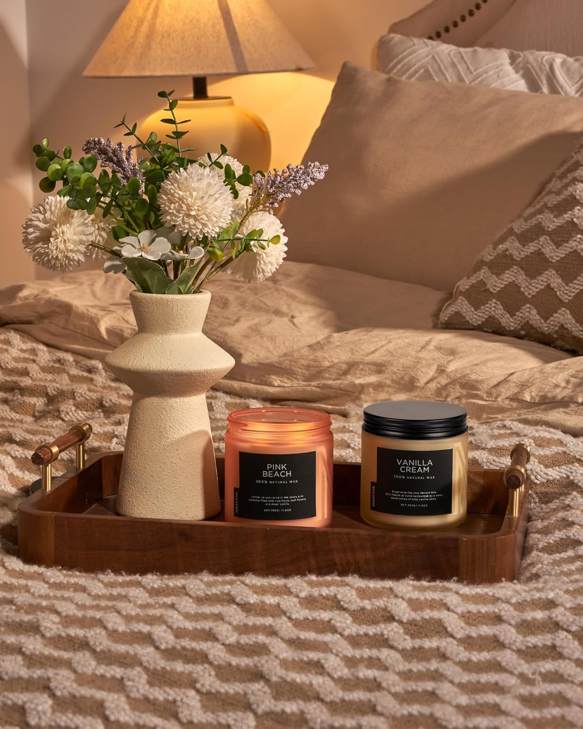 - β³ Room Filling & Long Lasting - These Scented candles are designed to burn for 60-70 hours when properly cared for. The net weight of wax is 11.6oz/330g. Recommended to use in rooms smaller than 20 square meters. Our high-quality formulas have been tested to perform for an extended period of time.