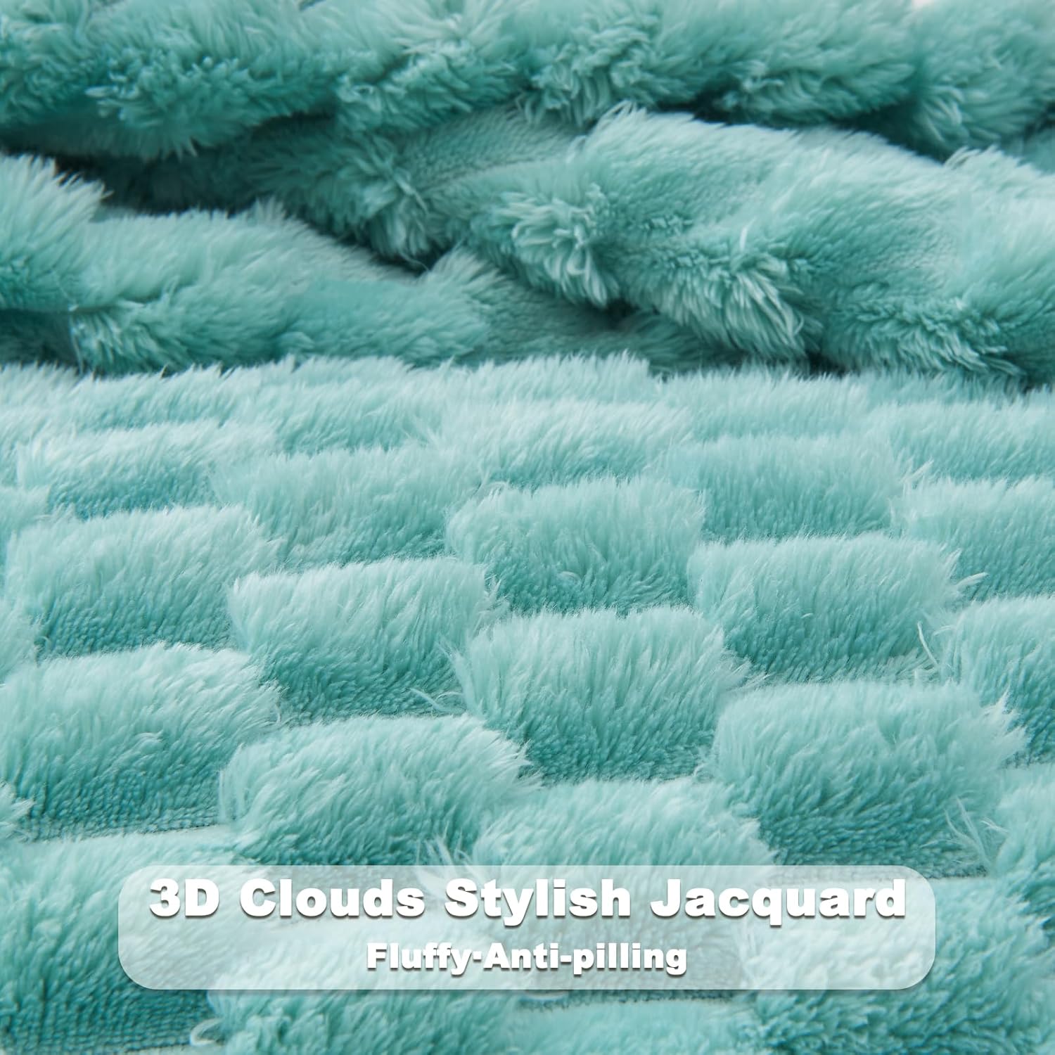 NEWCOSPLAY Super Soft Queen Blanket Sage Green Premium Silky Flannel Fleece 3D Clouds Stylish Jacquard Lightweight Bed Blanket All Season Use 350GSM (Sage Green, Queen(90"x90"))